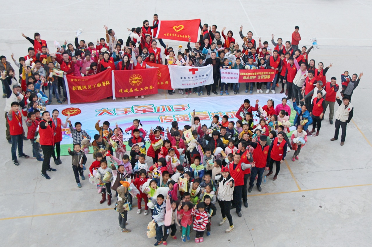 图为“大手牵小手”关爱留守儿童活动合影留念
