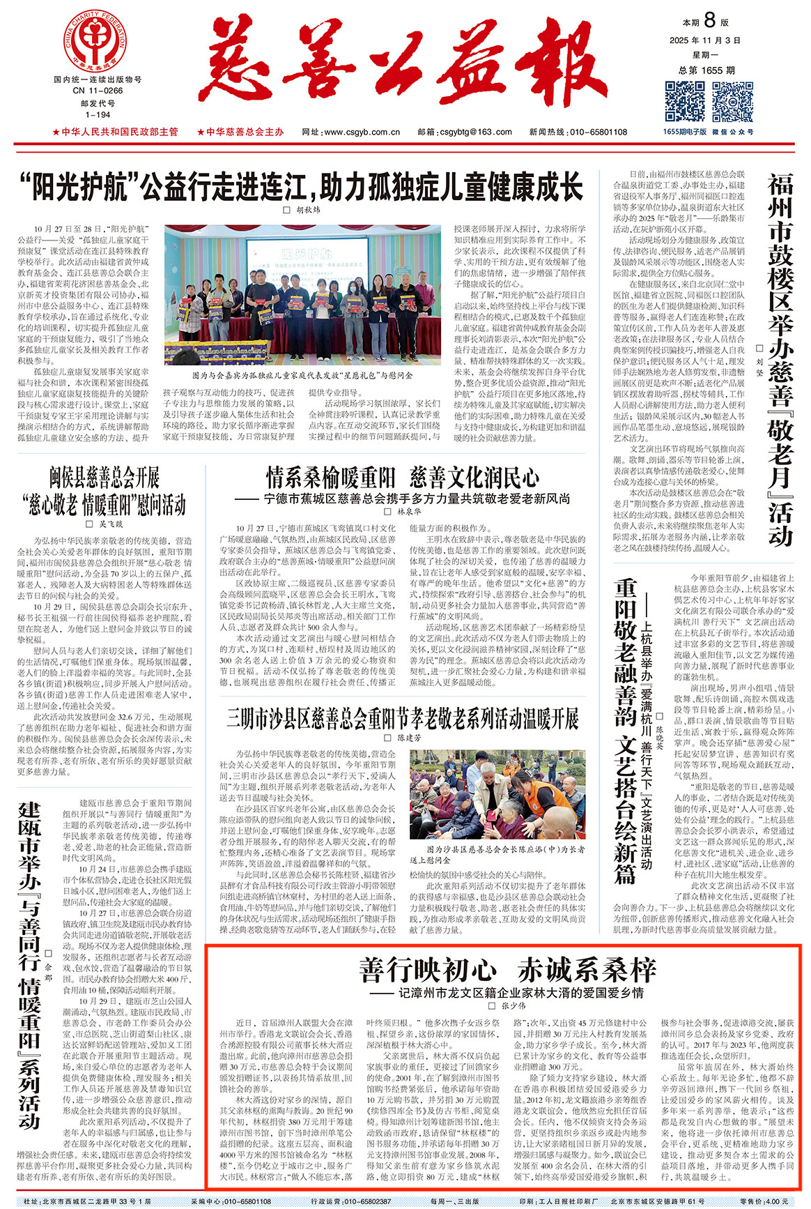 慈善事业在新时代承载着人们对美好生活的期望和社会和谐的追求。党的二十大报告强调引导和支持企业、社会组织和个人参与慈善事业。福建慈善成果丰硕,“慈善巡礼”活动将集中展示这些成果,传递温暖故事和真挚情感,让慈善之声响彻中华大地。