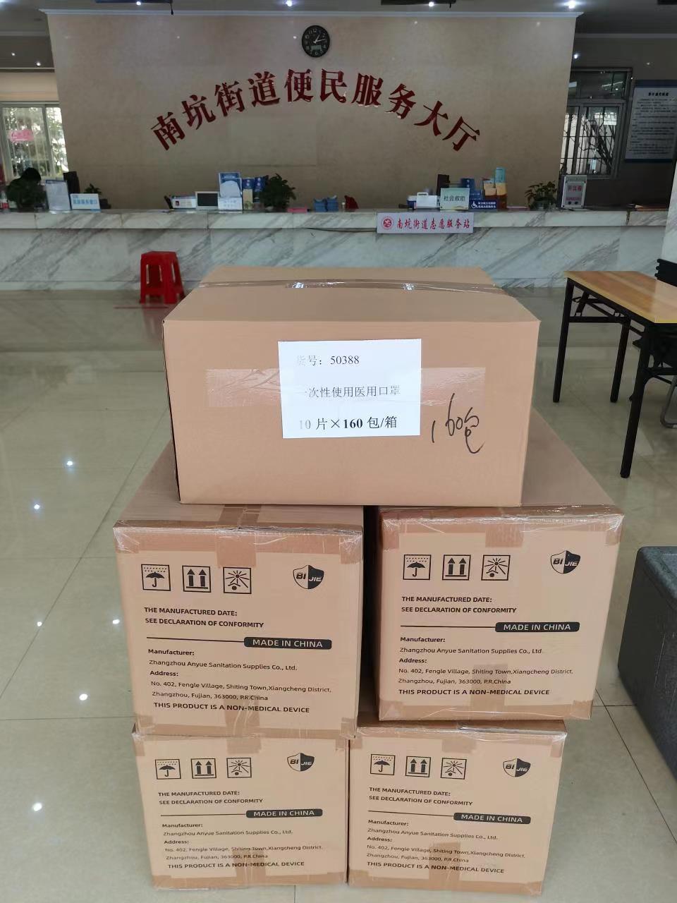 漳州市安月卫生用品有限公司捐赠医用平面口罩16000片、N95口罩32000片,总价值36000元;