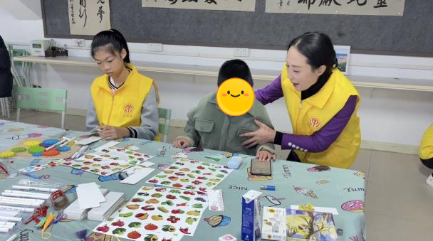 手工创作的过程,孩子们从握笔涂色时的力度控制,到剪裁贴纸的精准操作,再到粘贴装饰的层次搭配,一系列精细动作不仅锻炼了孩子们的手眼协调能力与专注力,更培养了他们的耐心与审美素养。志愿者老师全程陪伴互动,用“你设计的图案真有创意”“要不要试试搭配这个颜色”等鼓励性话语,充分激发孩子们的表达欲与创作热情,让每个孩子都能在实践中收获成就感。