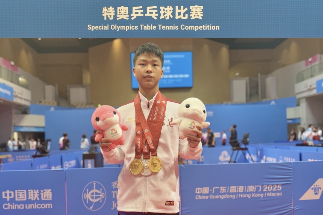 近日,全国第十二届残疾人运动会暨第九届特殊奥林匹克运动会特奥乒乓球比赛圆满落幕。福建省闽侯职业中专学校学生黄已新表现优异,分别夺得男子单打、混合双打两项冠军及男子双打亚军,以“两金一银”的优异成绩展现了顽强拼搏的体育精神,也为家乡闽侯增添了光彩。