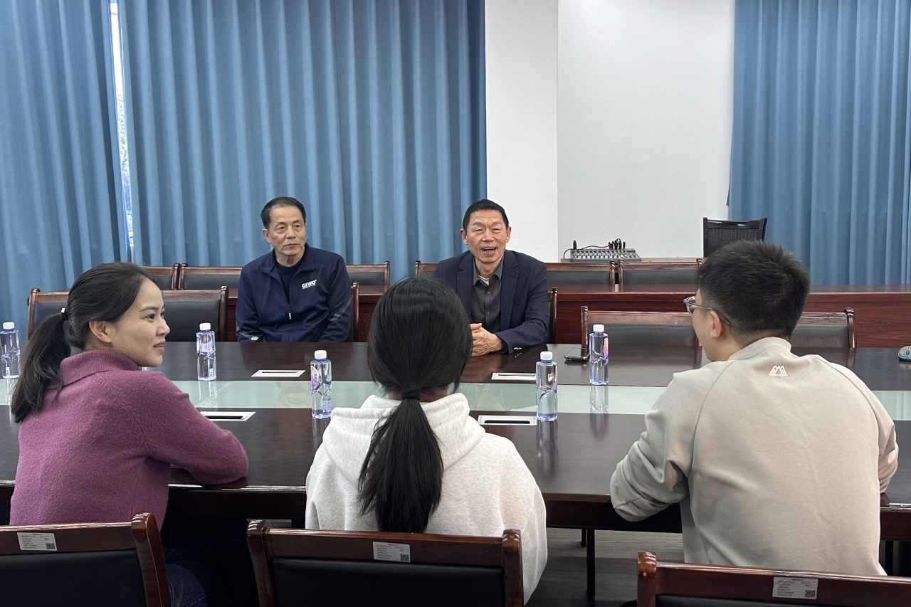 图为漳州市人大代表、市家居商会会长石亚明(后右一)一行与许同学座谈交流