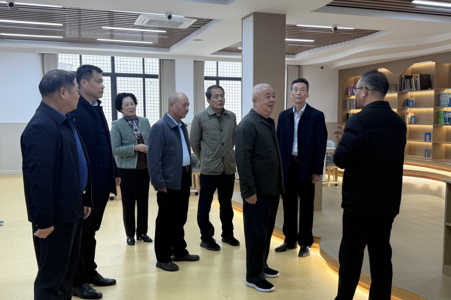 图为与会嘉宾参观华安二中“幸福家园”图书馆