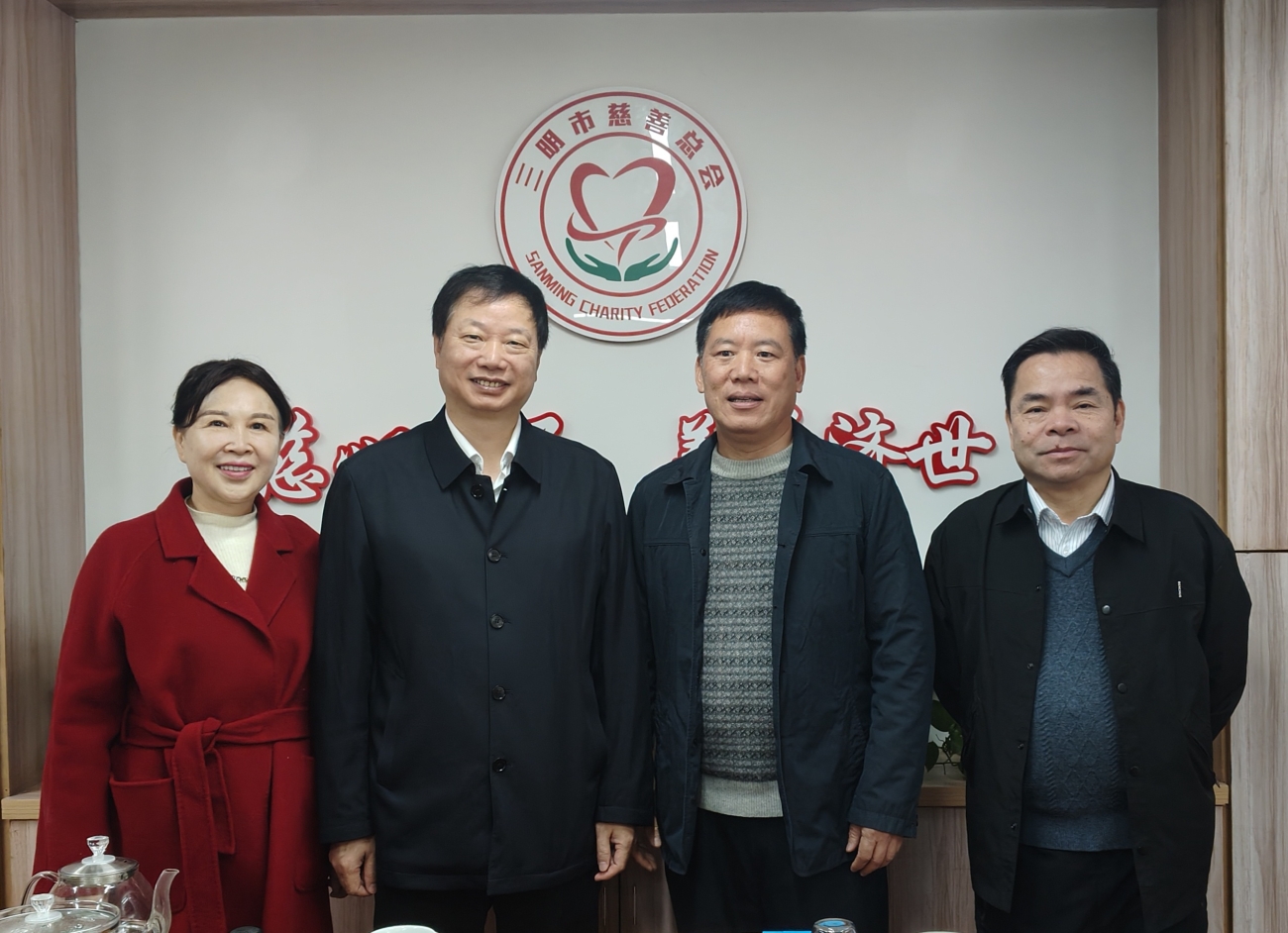 图为三明市人民政府党组成员、副市长吴健成(左二)一行到三明市慈善总会调研