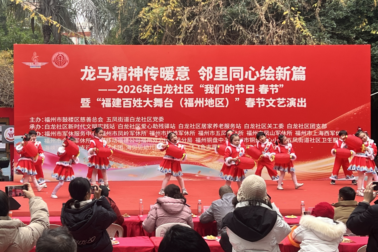 1月28日,“龙马精神传暖意,邻里同心绘新篇”春节文艺演出暨慈善便民活动在福州市鼓楼区五凤街道白龙社区双拥文化广场举行。此次活动由鼓楼区慈善总会与白龙社区党委联合主办,通过写春联送祝福、文艺演出、慰问帮扶及便民服务等形式,为辖区党员、困难群众、退役军人及广大居民送上新春温暖。