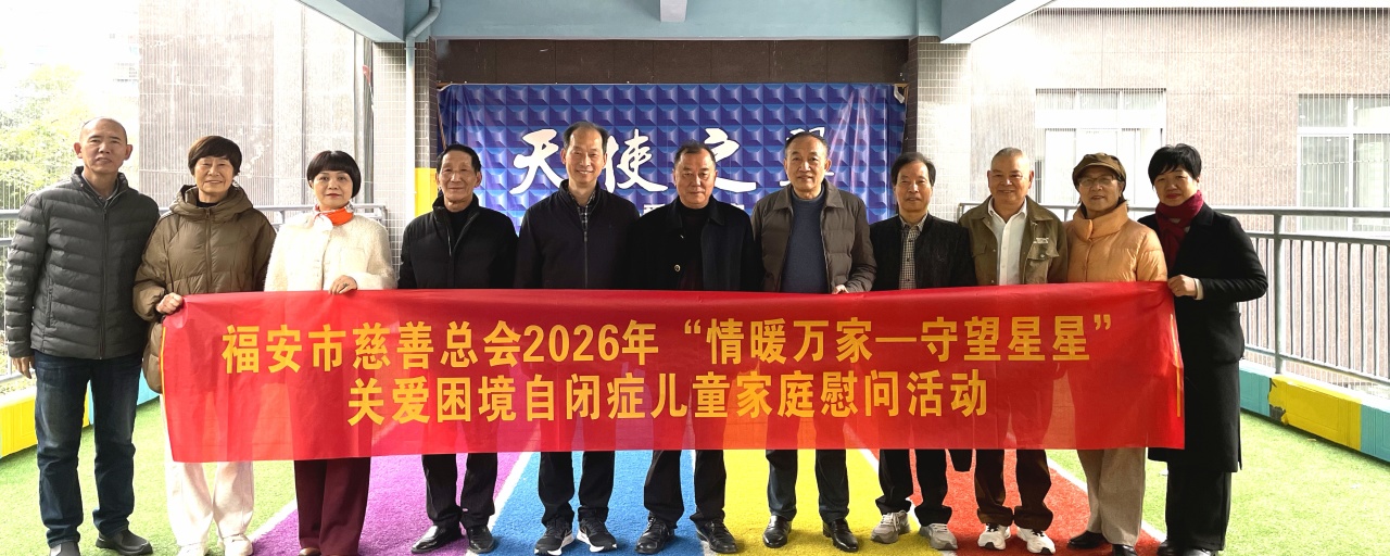 图为福安市慈善总会2026年“情暖万家—守望星星”关爱困境孤独症儿童家庭慰问活动合影