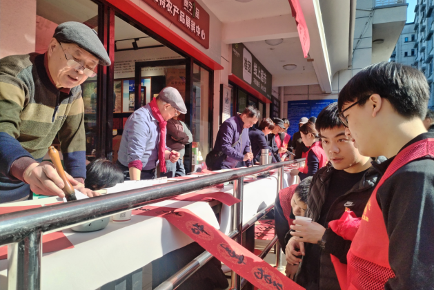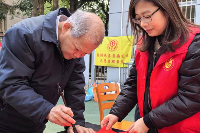 2月5日,“笔墨传情迎新春 公益惠民暖社区”活动率先举行。活动现场设有书法创作、健康咨询、知识宣传等多个区域。书法志愿者现场挥毫书写春联和“福”字,免费赠予居民;医务志愿者为前来咨询的居民提供健康指导;同时,志愿者还发放防范金融诈骗、平安出行等宣传资料,增强居民安全意识。