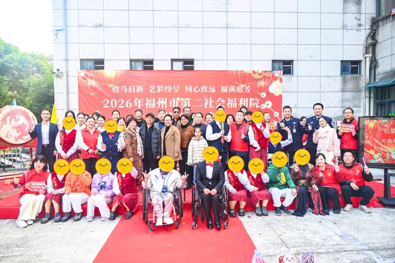 2月10日,福州市第二社会福利院举办2026年“骏马启新艺彩纷呈 同心致远福满庭芳”主题春节联欢会及星蜗新春公益集市活动,由福州市民政局指导,市区残联、共建单位、公益组织等嘉宾与福利院职工、服务对象齐聚一堂,共迎新春。