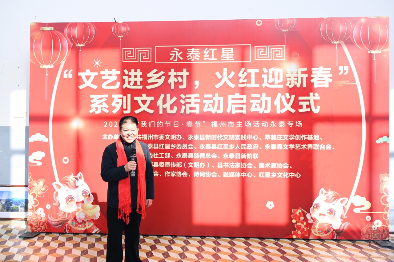 2月10日,由中共福州市委文明办,永泰县慈善总会,永泰县新时代文明实践中心,萃美庄文学创作基地,红星乡党委、政府,永泰县文学艺术界联合会,永泰县委社会工作部,永泰县新的社会阶层人士联谊会共同主办的“文艺进乡村,火红迎新春”系列文化活动启动仪式在福州市永泰县红星乡文化站举行。