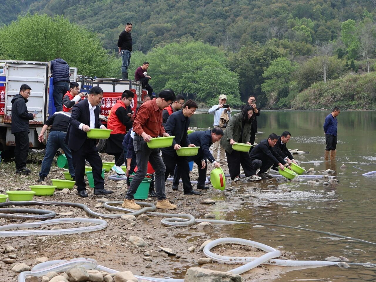 3月30日,宁德市蕉城区慈善总会、八都镇人民政府、蕉城区海洋与渔业局、福建三都澳食品有限公司、宁德市官井洋大黄鱼养殖有限公司在八都镇溪池村联合举办以“慈善赋能生态,共绘乡村振兴新画卷”为主题的百万尾香鱼苗增殖放流公益活动。活动旨在引导更多人关注并参与水资源保护与环境保护,以实际行动推进生态文明建设,为深入实施乡村振兴战略贡献力量。