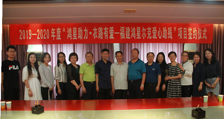 为进一步弘扬中华民族扶弱助残的美德,营造扶残助残、关爱残疾人的社会风尚,让社会多方共同助力助残扶残事业,10月10日,福建省残疾人福利基金会举行2019-2020年度“鸿星助力衣路有爱-福建鸿星尔克爱心助残”活动项目签约仪式。