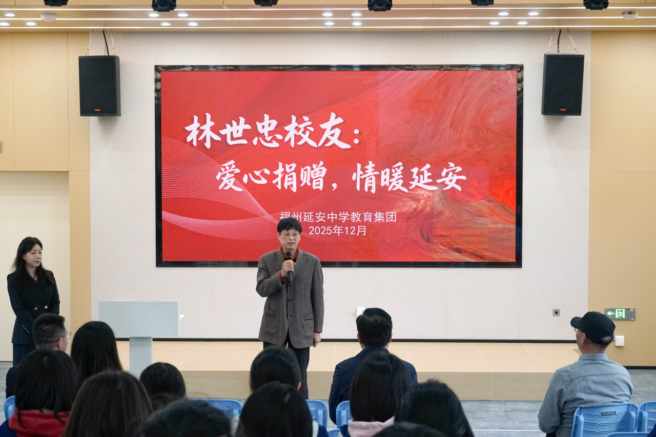 福州延安中学教育集团总校长蔡叶涛对林世忠的慈善义举表示衷心感谢,并寄语学生以其为榜样,踏实做人、勤勉做事、乐于奉献、回报社会。(王桃京)
