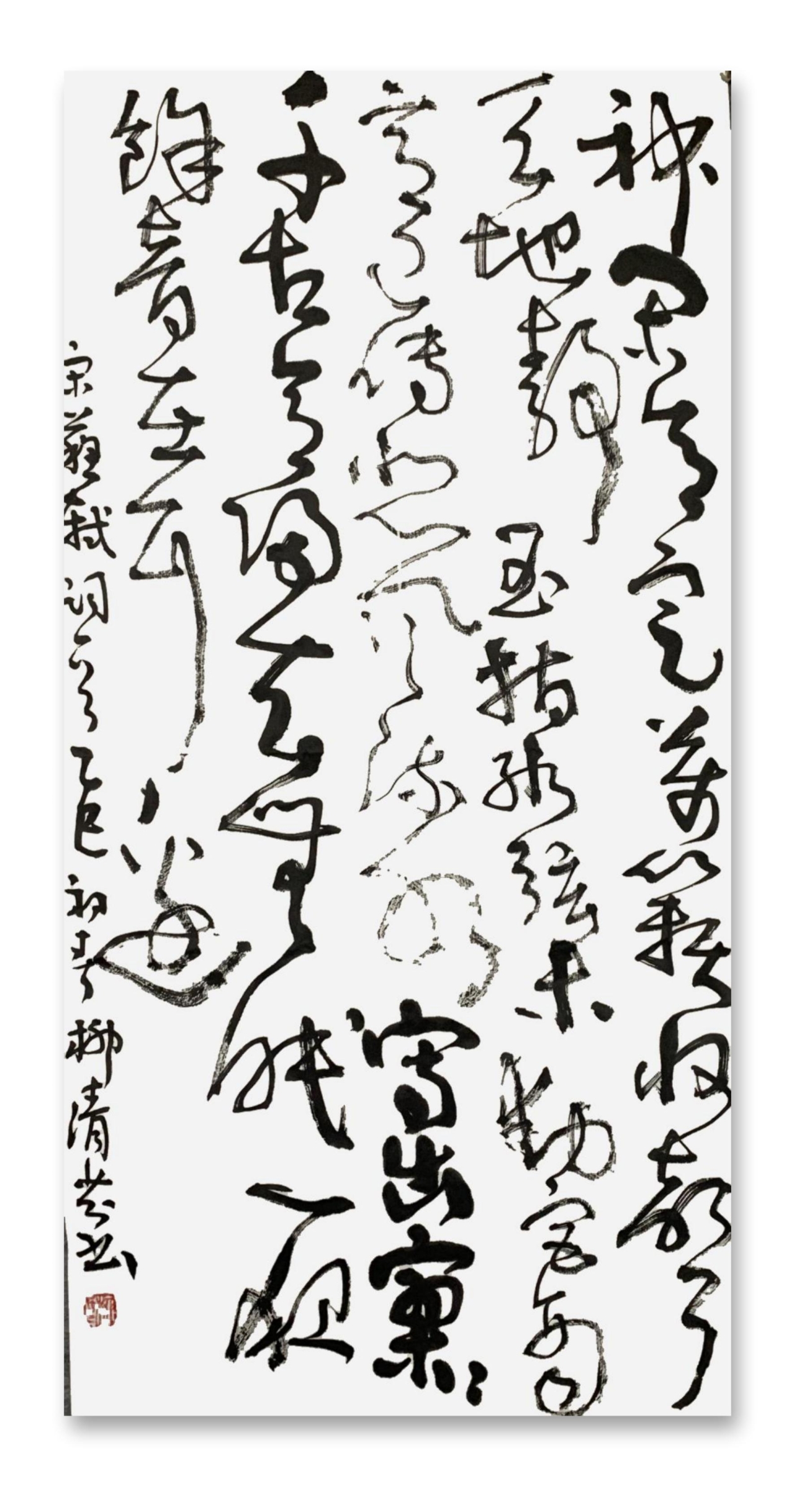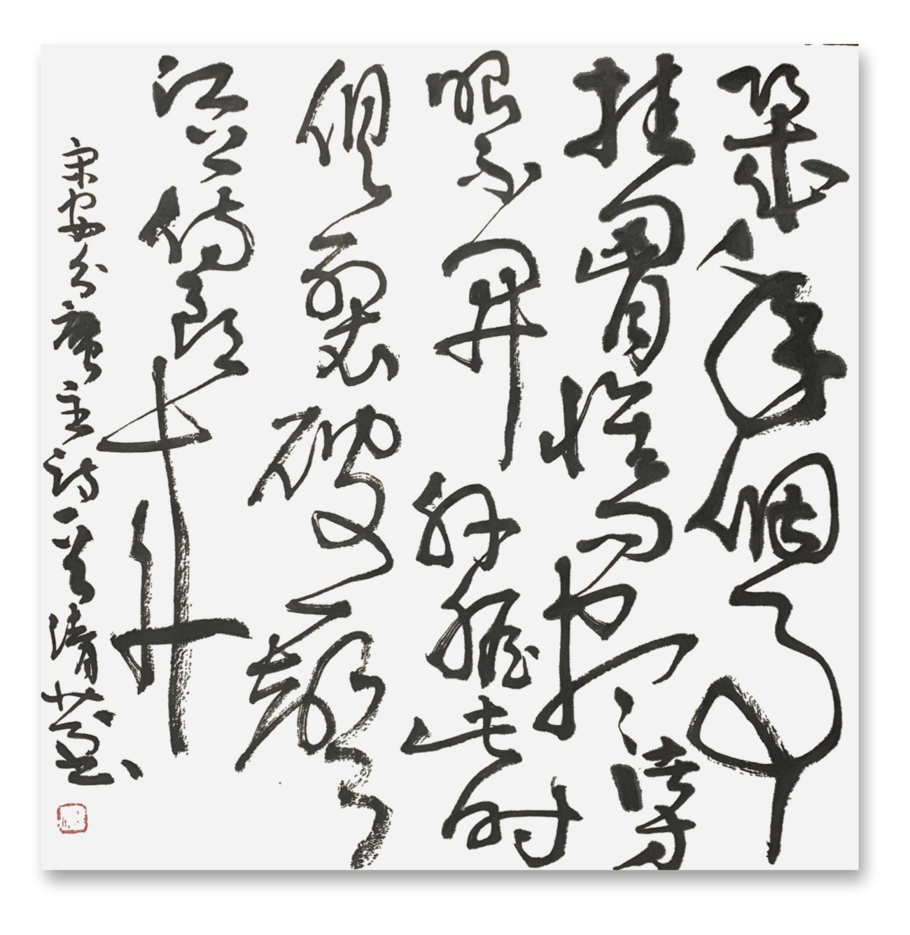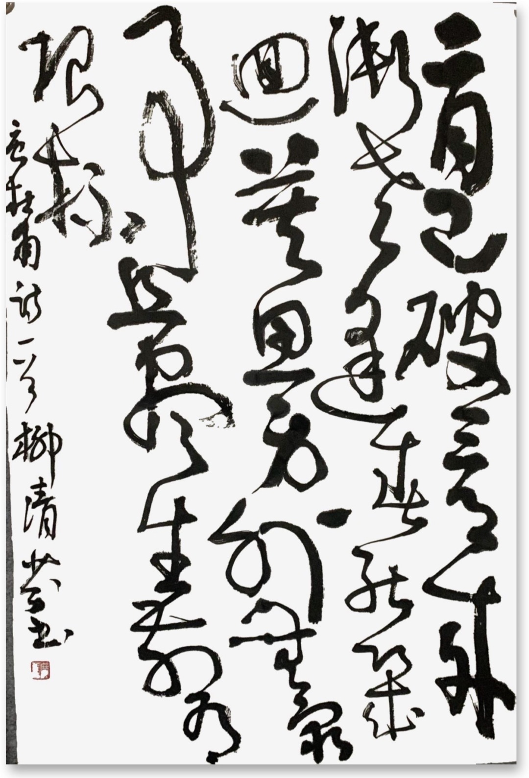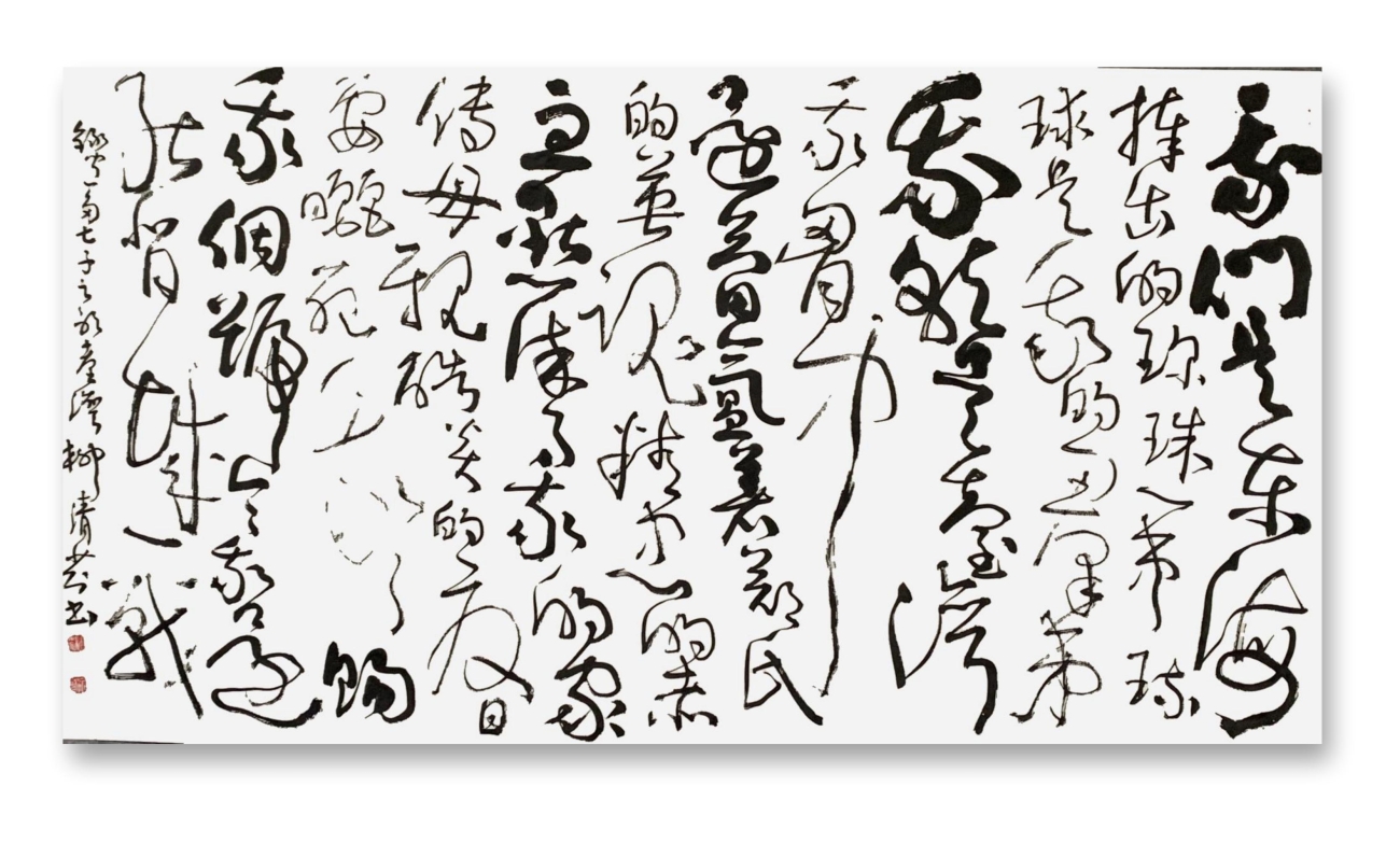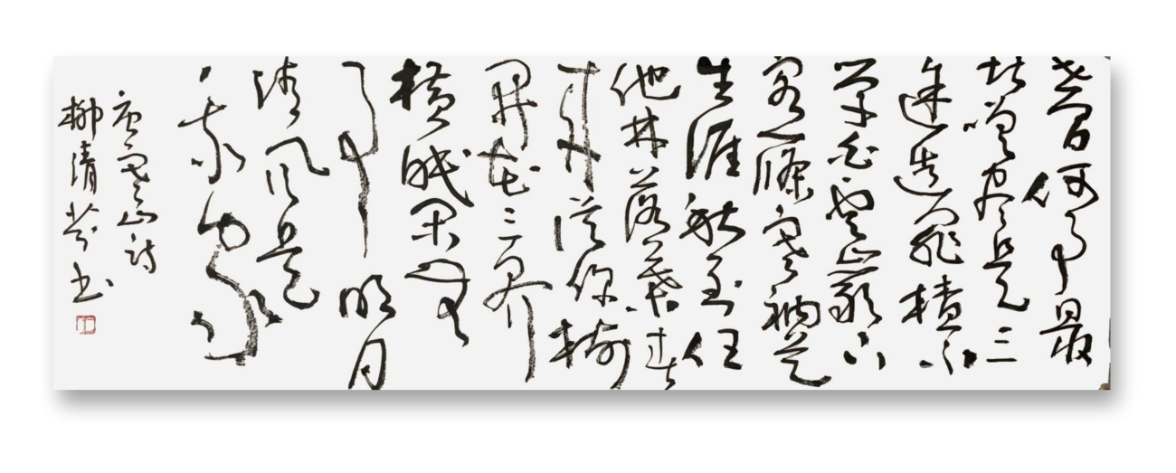 我们注意到:她的草书线条粗细变化明显,浓淡枯湿、行笔迅健、用笔有力、跌宕有致、变化万千。有颜筋柳骨、鸳飘风泊之气势、且不乏隽永洒脱。