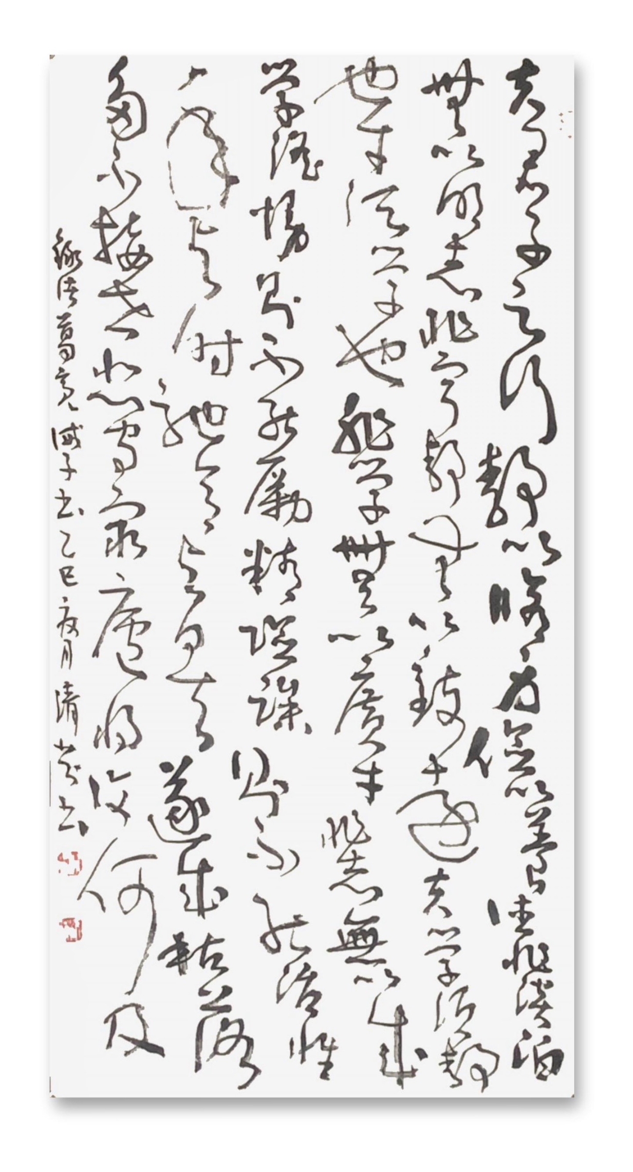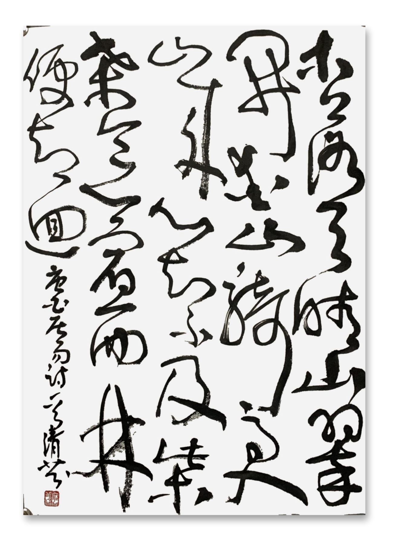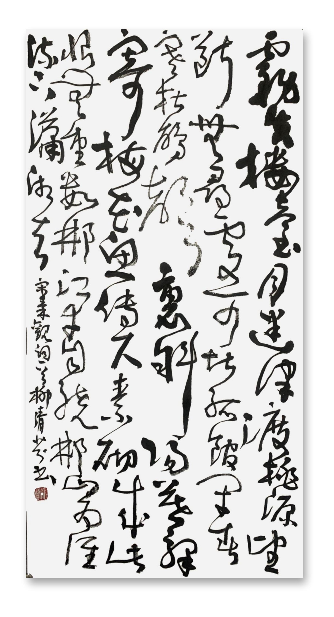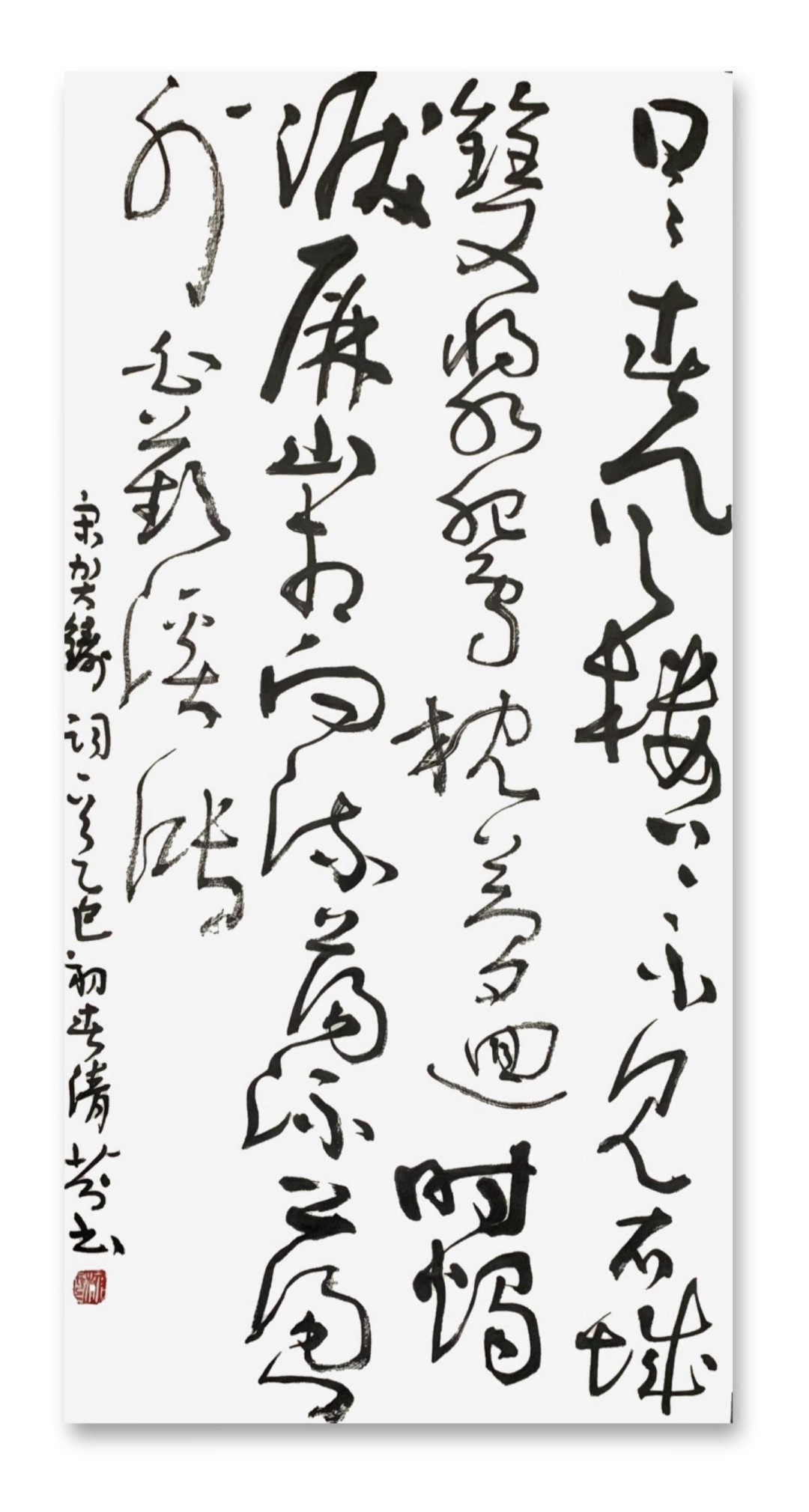 我们注意到:她的草书线条粗细变化明显,浓淡枯湿、行笔迅健、用笔有力、跌宕有致、变化万千。有颜筋柳骨、鸳飘风泊之气势、且不乏隽永洒脱。