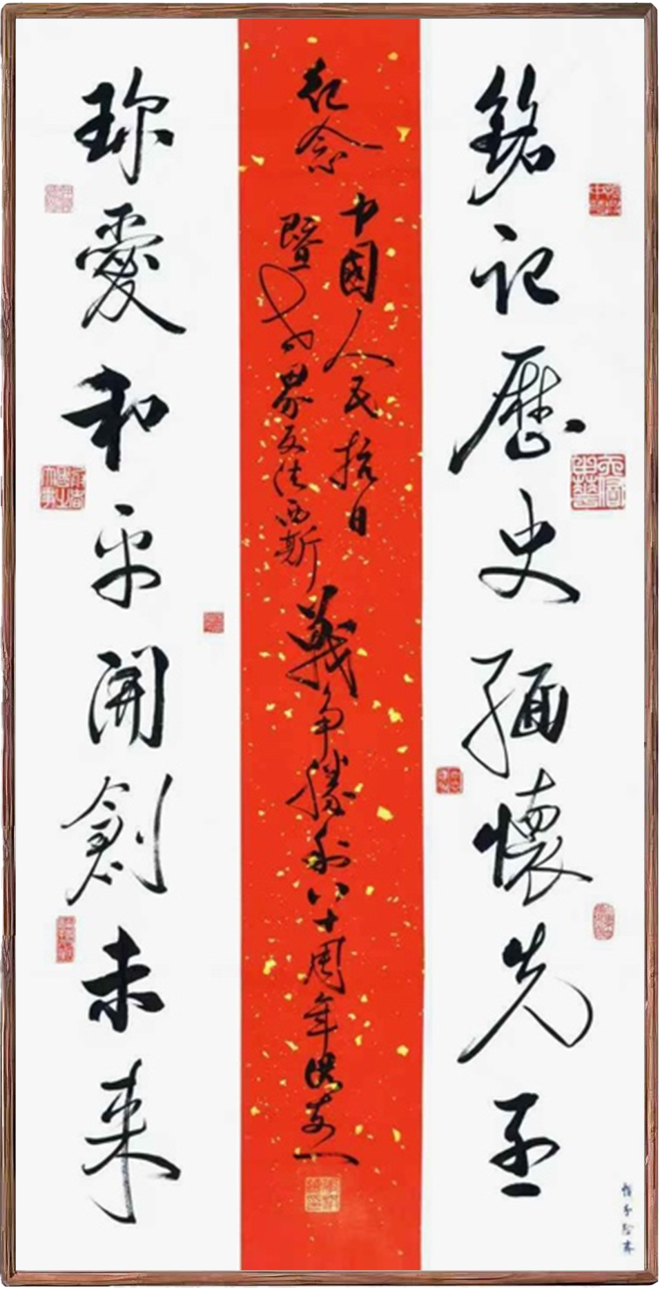 习近平主席在最近的讲话中说:“艺术家要始终坚定与人民共命运、与时代共进步的理想信念,担负起光荣使命和时代责任,坚持以人民为中心的创作导向,深入生活、扎根人民,讴歌党、讴歌祖国、讴歌人民、讴歌英雄,以更加饱满的热情在实现中华民族伟大复兴中国梦的历史进程中,谱写艺术和人生的华彩篇章,为推动社会主义文艺事业繁荣发展做出新的更大贡献。”这就是要让艺术家紧随时代,要歌颂这个时代。作为一名书法工作者,要积极响应党中央和习主席的号召,要紧跟时代的步伐。所以,这些年来,在党的培养下,在军博的关心帮助下,在中国书协的领导下,围绕书法艺术做了一些有益的工作。