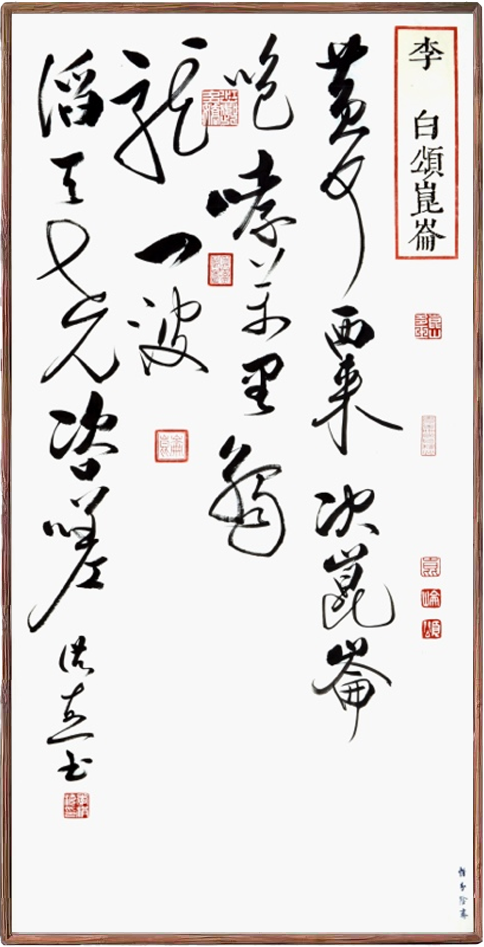 【李洪海】:中国的书法走到现在,改革创新是必然趋势,但怎么创新却大有学问。这里面各方面情况很复杂,我就不一一赘述,我就从启先生对我的教诲来说。他说,书法的创新,首先是继承,其次才是创新和发展。启先生说:对于书法的创新,你只要坚持继承,你在这个时代就能做到不创也新。在我们这个时代,不可能再出现第二个王羲之,你只有向前人好好地学习,从前人那里吸收营养,他热切地对我说,洪海,什么叫创新呀,你就好好地临帖,古人的字、古人的帖能流传到现在几百年、上千年,里面肯定有真东西、有真金,你学到了古人的真东西、真金,并体现在你身上,你身上的真金就多了。你把古人的精髓贴在你身上了,你身上就有光了,说明你就有了创新的基础。如果你没有从古人那里吸收真正的营养,那么你就别谈创新。一件好的作品不能全像古人,起码百分之七十是古人的,百分之三十是自己的。全是古人的或全是自己的都不叫创新。按照启先生的教诲,我认为书法的创新发展主要体现在六个方面。