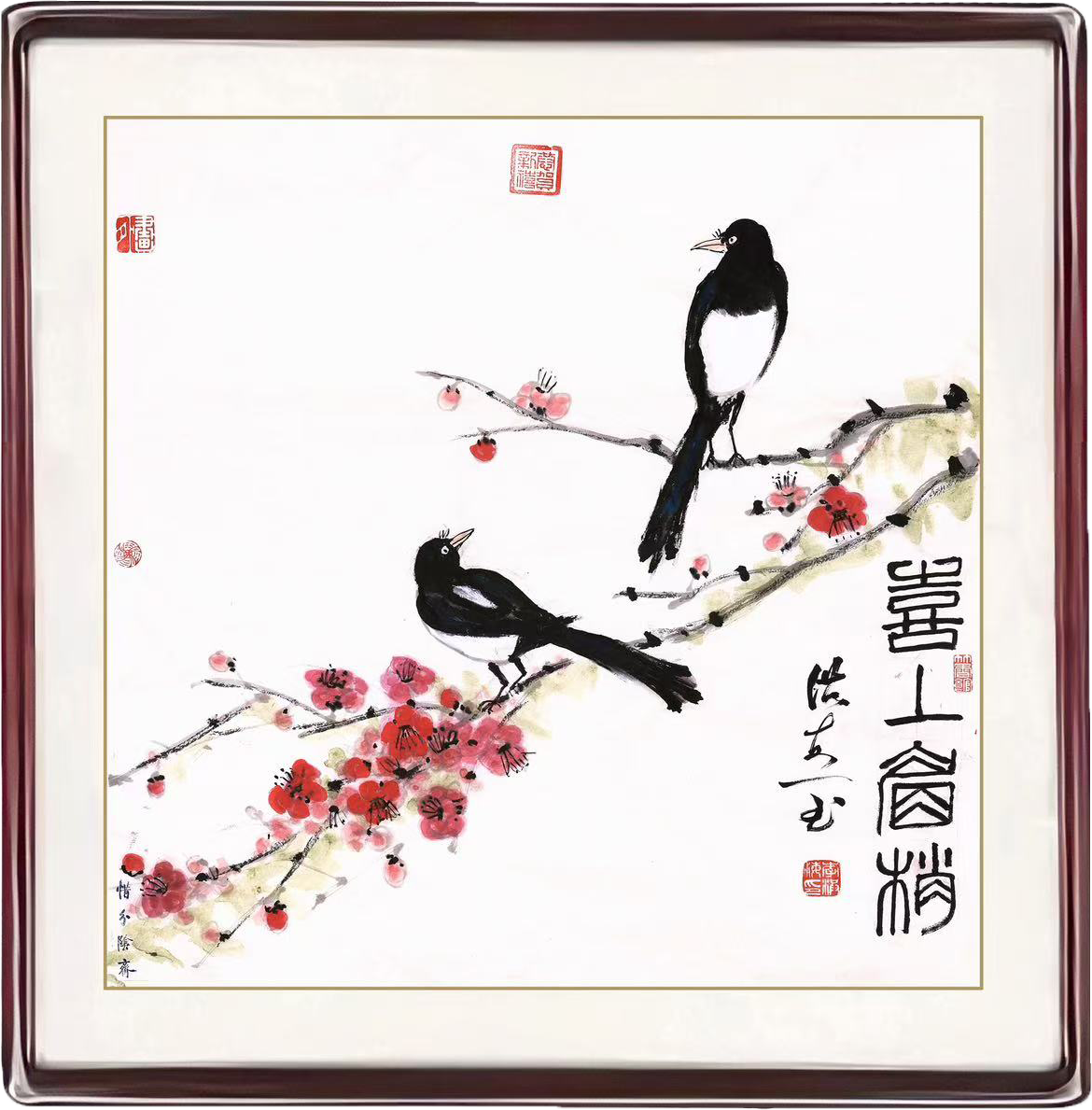 二十世纪七十年代,李洪海师从国学大家启功先生,得先生把腕,承袭正脉,经多年研习,形成了内紧外拓、疏密相间、骨势秀逸、体势俊美书风。在追求艺术的道路上充分发挥诗书画印的特长,在梅兰竹菊题材创作上努力探索,开辟新境,将四君子赋予更深层次的精神内涵。他的梅,凌寒独放,象征着坚韧不屈的志节;他的兰,清新脱俗,展现出文人逸士的高洁品格;他的竹,虚心劲节,寓意着生命的韧性与气节;他的菊,傲霜怒放,表达出不趋流俗的品格与超然心境。这些作品既饱含传统艺术形式,又兼具现代美学意识,在笔墨之间彰显独特的个性与精神追求。其篆刻作品刀法苍劲,结字严谨,既承古意,又融个人风格,深受业内推崇。
