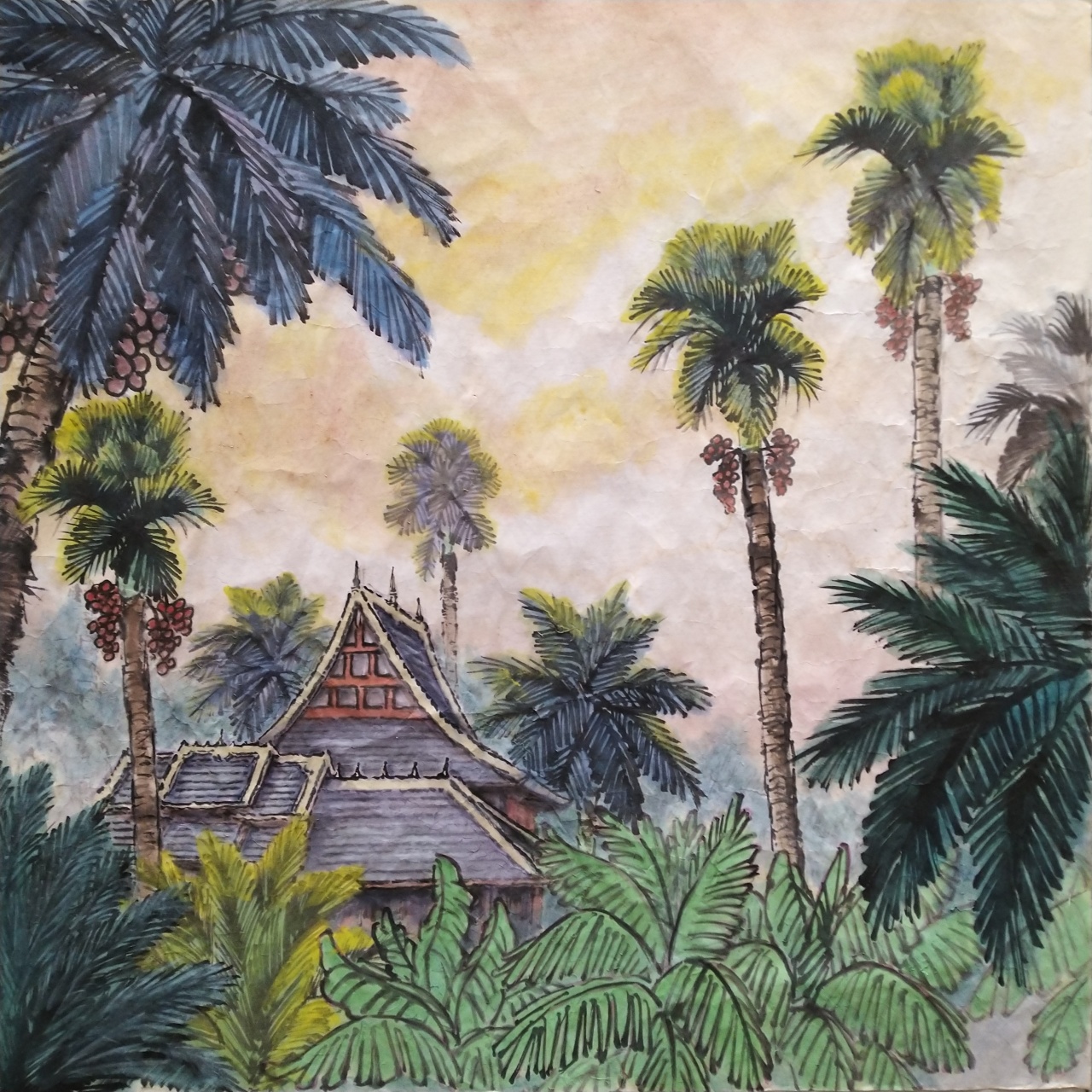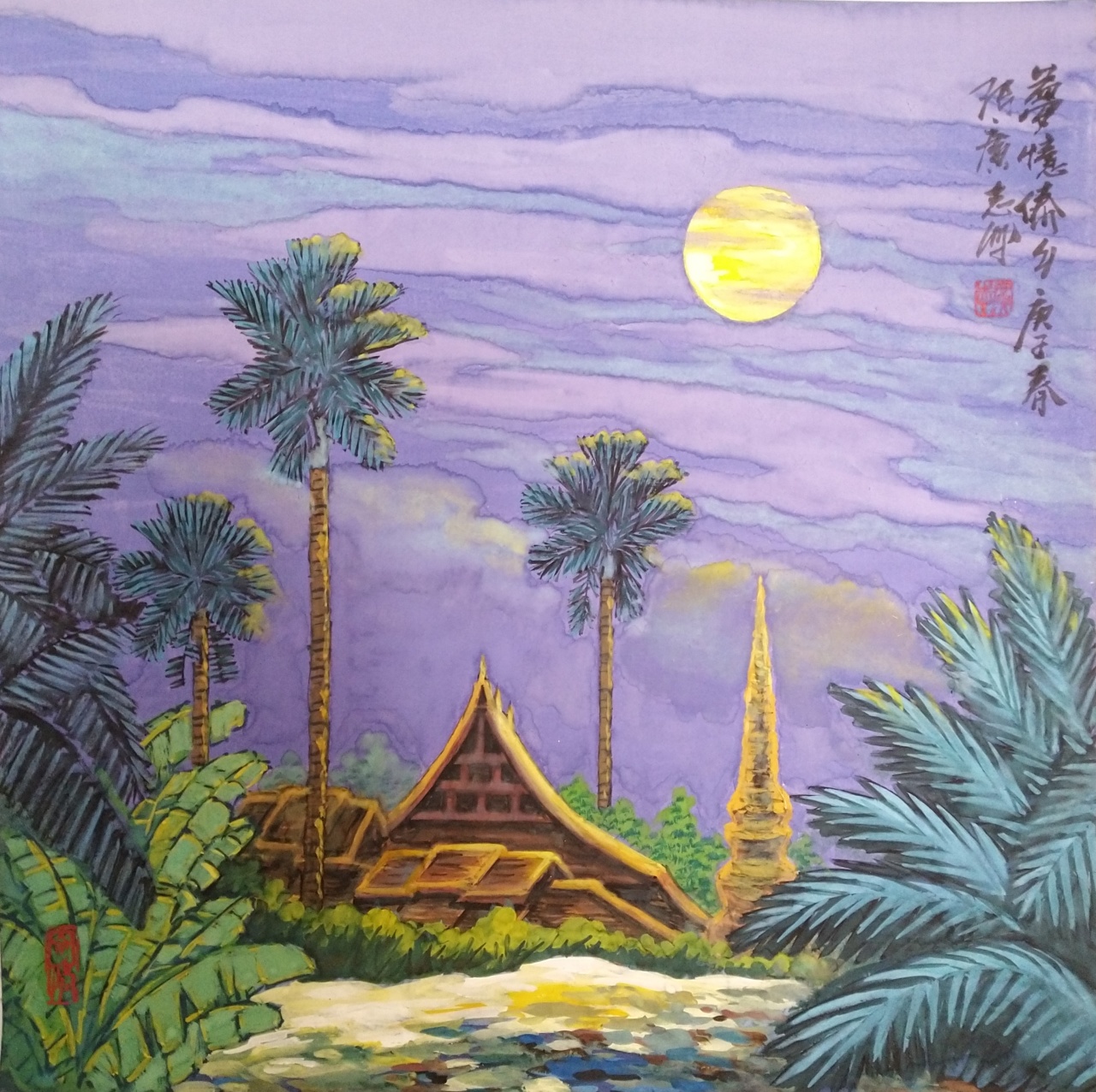 我的画作追求唯美,很多人看到我的画作都问我:这么美的景色在西双版纳什么地方?我笑笑说:这是我心中的西双版纳。