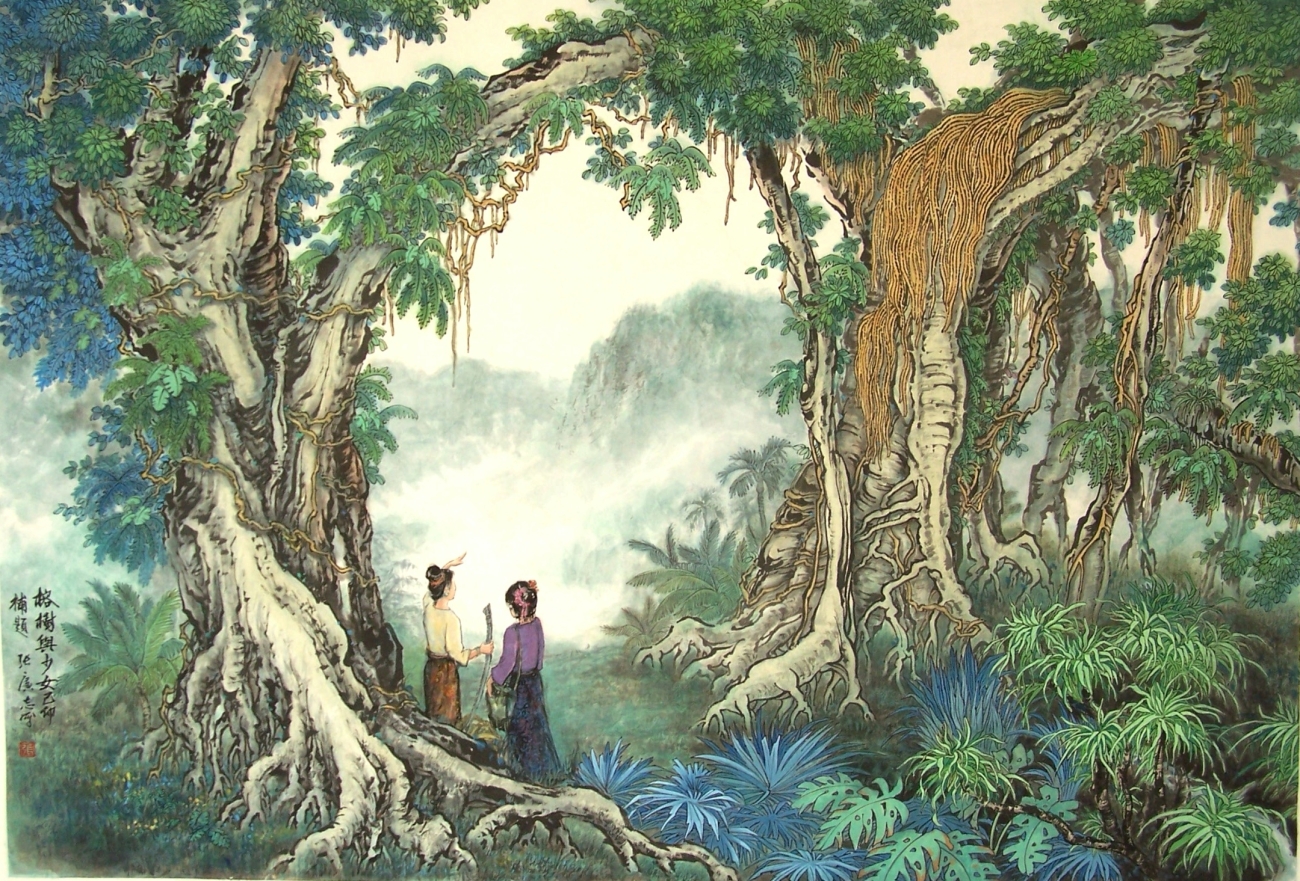 一个美术家的个人风格是自己艺术成熟的标志。而个人风格的形成需要艺术家的悟性与灵感,当然勤奋的艺术实践也是必须的。我在三十岁时就苦思探索个人风格问题,但始终不得其法,终于在1990年,我的恩师中央工艺美术学院教授黄显隆约我去西双版纳采风。那时的我十分兴奋,更让我意想不到的是,此次西双版纳之行,竟打开了我艺术生涯的一扇窗。