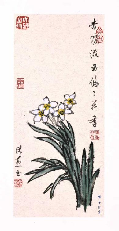 【李洪海】:追寻古人,中国画用好印是一大特色,这一点外国人没有,他们也很不理解。其实,治印历史十分悠远,起码有2500年了。真正把印用到画作中,可追溯到唐代,但真正在书画上大量盖印,应是宋代,代表人物是苏轼和米芾。尤其到元代,赵孟頫、王冕用印十分讲究,把印章的内容和钤盖的位置都融入书画创作中,特别值得我们学习借鉴。我在创作中也向古人学习,针对画面需要治印,印面的内容不仅要与画契合、深化主题,而且在形式上有白文、朱文及闲章、肖形印等,有效调节画面色彩和疏密关系,与诗、书、画共同营造完整的艺术氛围。