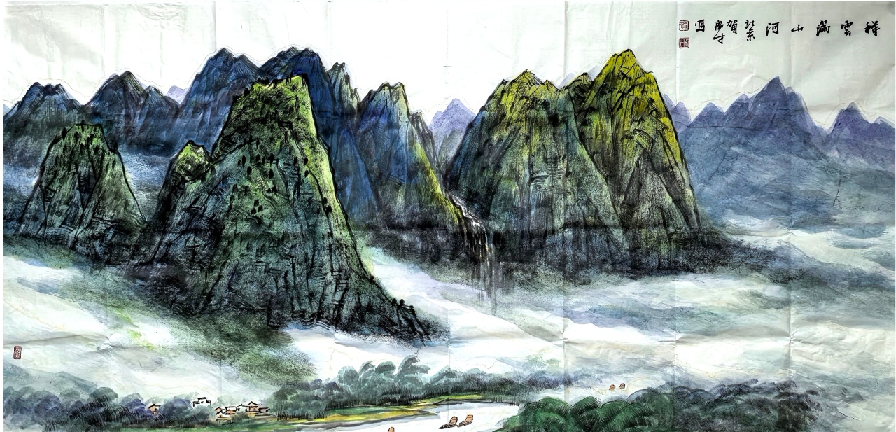 在表现衡山云雾时,我大胆地将光色颤动下的迷朦感融入水墨的渲染之中。但绝非简单的再现,而是以轻松的笔意让色彩在水墨的引领下自由流淌。当色彩与墨在纸上相遇,氤氲化开,衡山特有的云海奇观便跃然纸上——既保有传统山水的气韵,又闪烁着印象派的光色魅力。