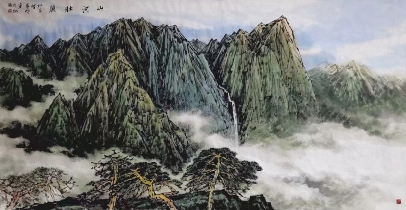 我以书法中的篆籀笔法勾勒枝干,再用点彩的方式表现松针的翠绿。完成后的古松,既保有传统笔墨的书写性,又洋溢着现代绘画的色彩活力。这一刻,我又一次深刻体会到“笔墨当随时代”的真义。传统不是用来模仿的,而是用来感受的。我们与古人的真正传承,不在于重复他们的笔墨形式,而在于延续他们面对自然时的创造精神。