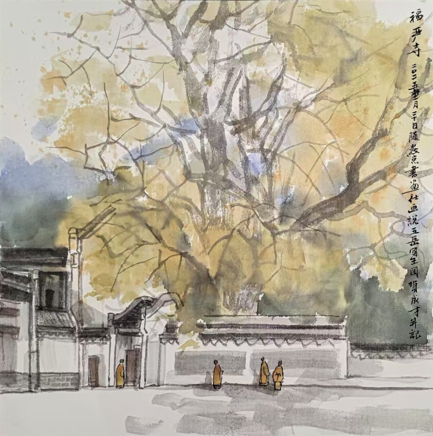 历时8天的衡山写生即将结束,我的行囊里装满画稿,心中却依然充满探索的渴望。回顾这段创作历程,我更加坚信自己确立的艺术方向:传统国画的现代化转型不必以牺牲笔墨精神为代价。在衡山的写生实践中,我成功地将西方的色彩感知、构成意识,与中国画的笔墨精神、衡山的人文底蕴融为一体,创造出既有传统根基又具当代气息的彩墨新语言。