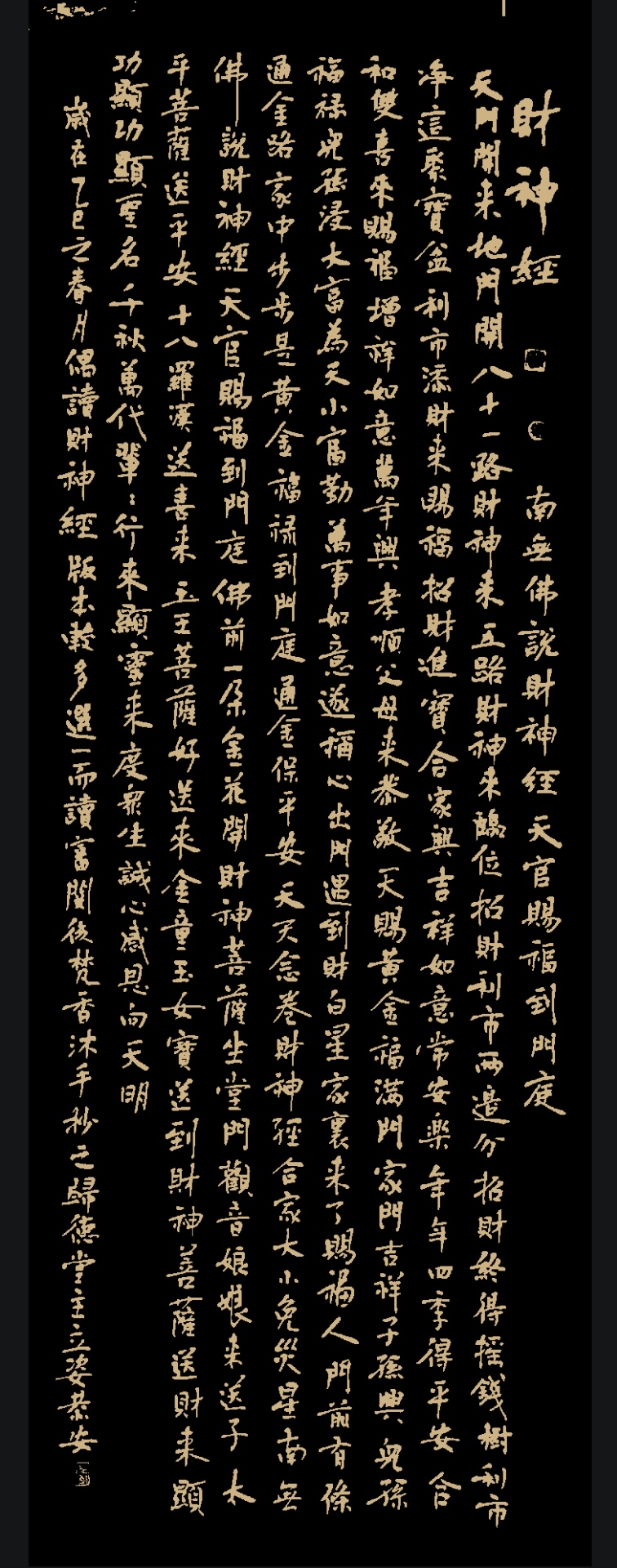 其实,丰富的笔墨语言,来自于丰富的学养。杜敬义主攻一家,以褚体为宗,并兼习历代诸家名贴,深悟“二王”,追溯唐初“欧虞”,师古而不泥古,以“勤为上”的坚持形成了更加灵动飞扬、笔墨凝实、骨正筋柔、气血贯通的结构佳作。褚遂良的书体素有“字里金生,行间玉润,法则温雅,美丽多方。外拓取姿,中擪有法,瑶台婵娟,不胜绮罗”的高度赞誉,为了取得其中灵动活泛之法度,他在温彦国老师的指导下,认真研究褚遂良不同时期的书法艺术风格,如褚遂良四十多岁所作的《孟法师碑》、五十多岁所作的《房梁公碑》《伊阙佛龛碑》,和被后人称为“唐代书坛教化主”的《雁塔圣教序》《倪宽赞》,以及被传为褚遂良所书的《阴符经》等精品,又不惜代价收罗有关类似褚遂良书体的书法字帖,诸如《龙藏寺碑》《信行禅师碑》《李靖碑》《王居士砖塔铭》等,他对这些书帖持之以恒地反复习练,在经年累月的功夫实践中,从点画、结构到谋篇布局,无一不细心体会,手追心摹,以娴熟的笔墨领悟出了清腴华润、法度严谨的审美意象。