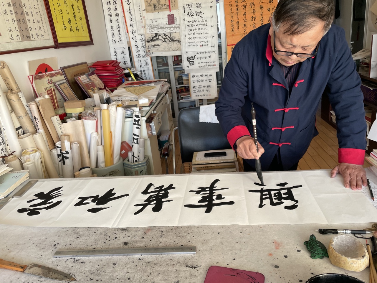 图:杜敬义先生在创作中
