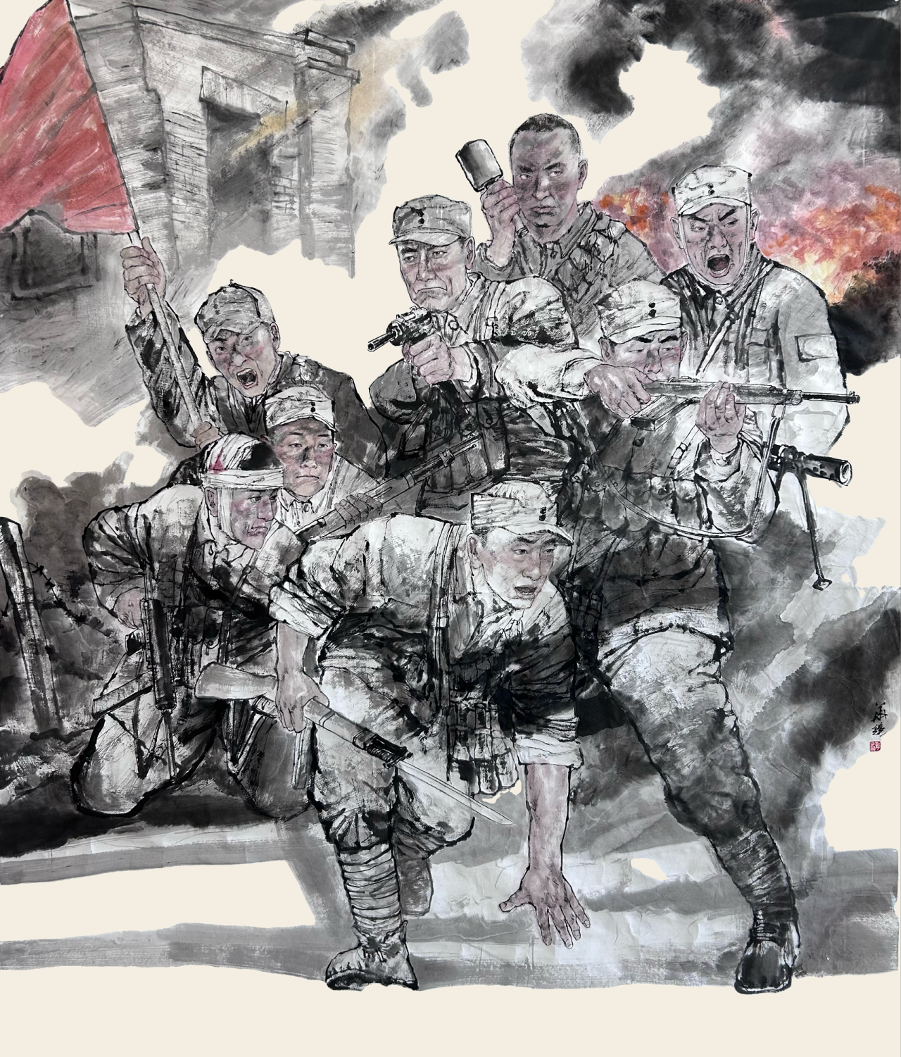 他的笔墨生发从无空泛之谈,始终立足对现实的真切感知,落足于扎实的笔墨功底、对人物结构的通透理解,以及对生活形象的精准提炼。品读其画作,一股静谧之感会悄然流淌心间——他从不用夸张的笔墨夺人眼球,而是让人物形象静静流露于笔端,沉淀于情感深处,在生活众生中寻找并升华水墨语言,在凡人真情中凝聚塑造出动人的艺术形象。
