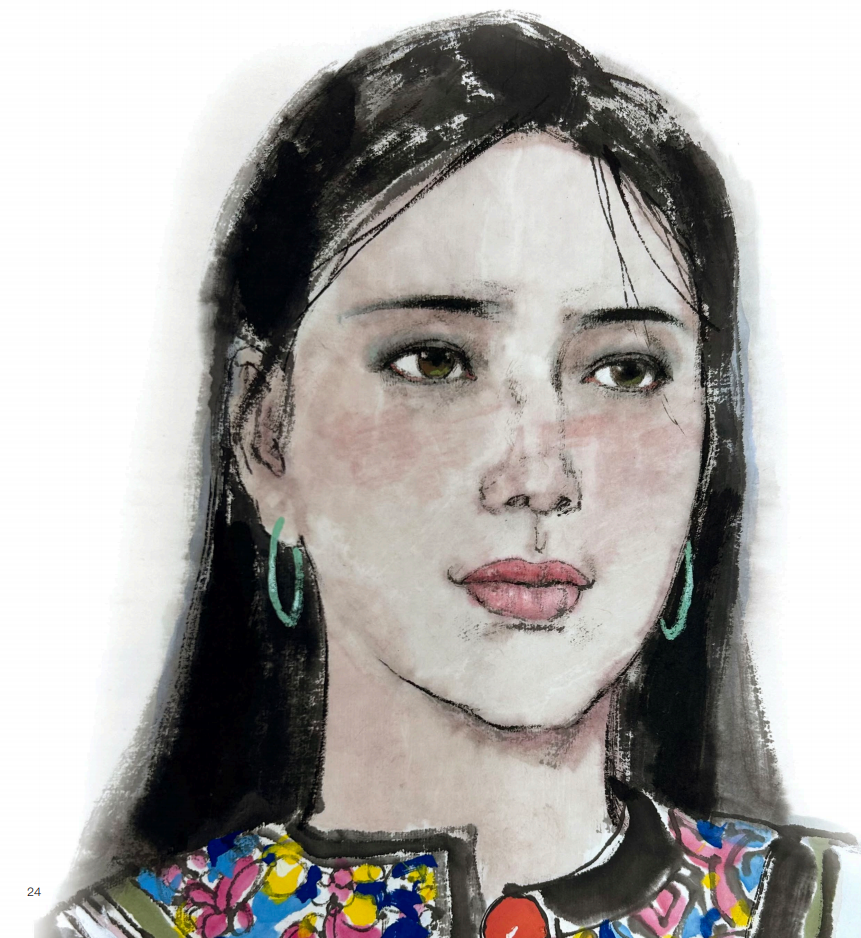 他的水墨肖像,始终扎根中华文脉厚土,于宋元文人画的笔墨精神中汲取养分,又融入当代审美与时代精神,不困于古法、不泥于陈规。观其作品,中锋行笔如骨立,人物轮廓精准而不失气韵;水墨晕染若气行,肤色肌理温润而富有层次;点染皴擦间,“气韵生动” 的古典意蕴与 “笔墨当随时代” 的当代思考交相辉映。