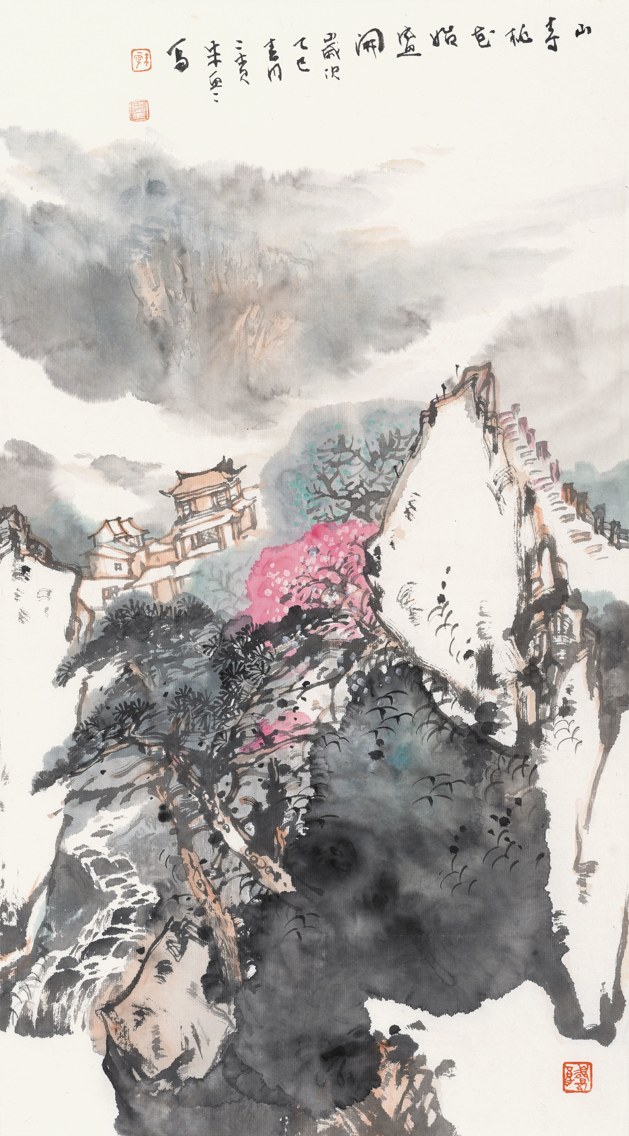 他视作诗为意境传达的重要载体,深谙石涛“诗画共生”之道。“漫写溪山亲风雅,满纸烟云入禅家”,这句题画诗,正是他创作心境的最佳写照——笔墨藏山水,画里有文心。