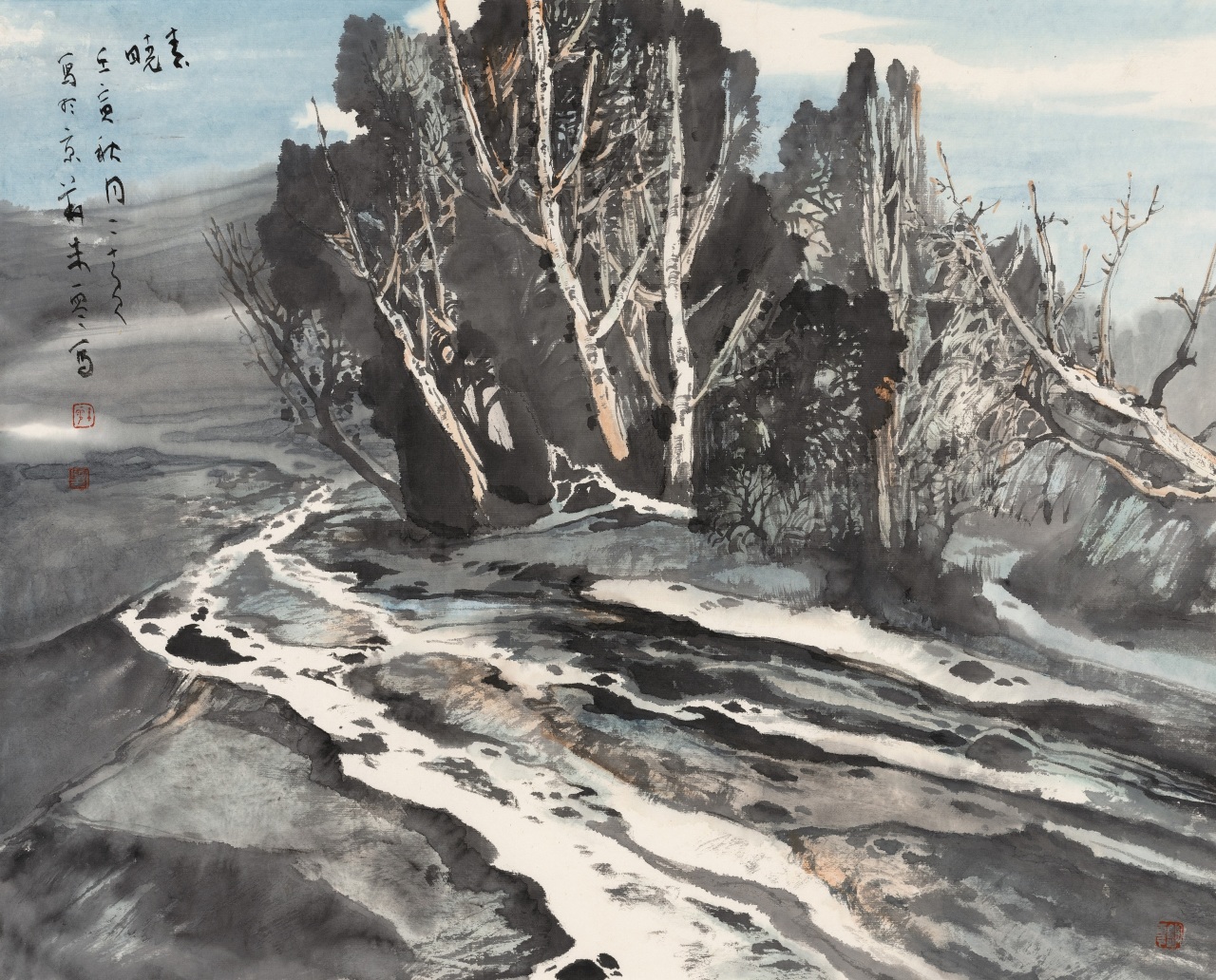以传统笔墨为基础,对自然景致进行主观转化与艺术提炼,赋予山川草木文人意趣,这是他写生的核心逻辑。其关键,在于实现“笔墨转换,鲜活为魂”:通过细致观察自然、合理取舍景致,重组皴法等传统笔墨元素,让古老的笔墨在自然中“活”起来,最终达成心与物的相融,让每一笔、每一划都承载着自然的生机与画家的情感。