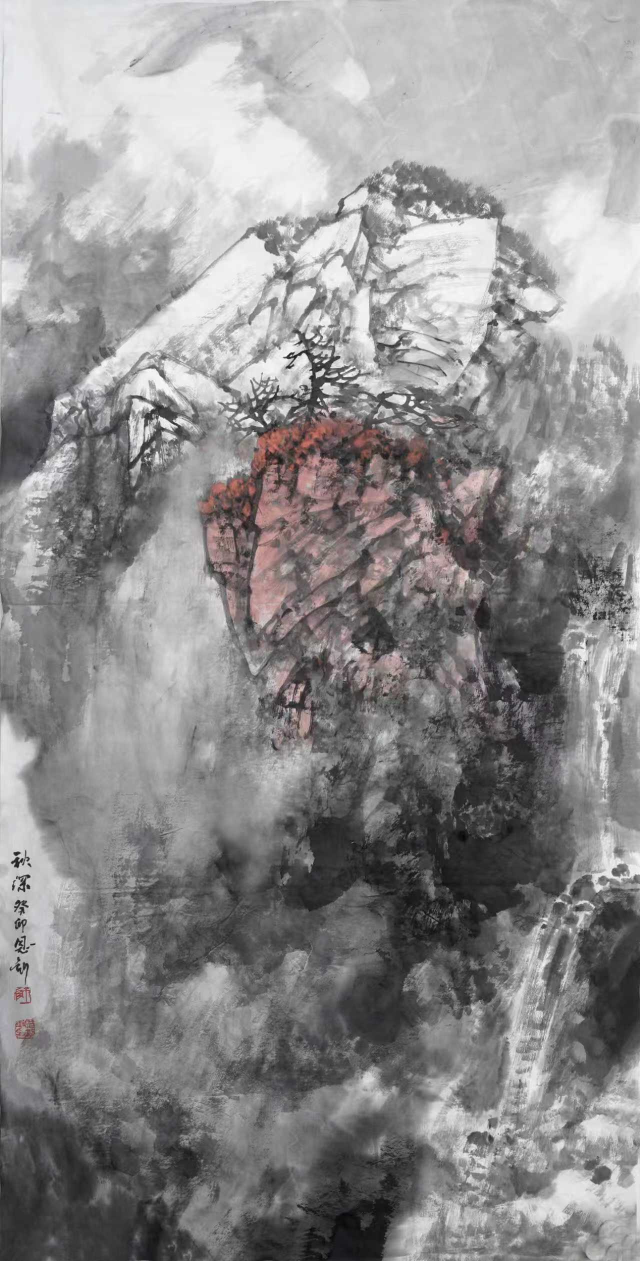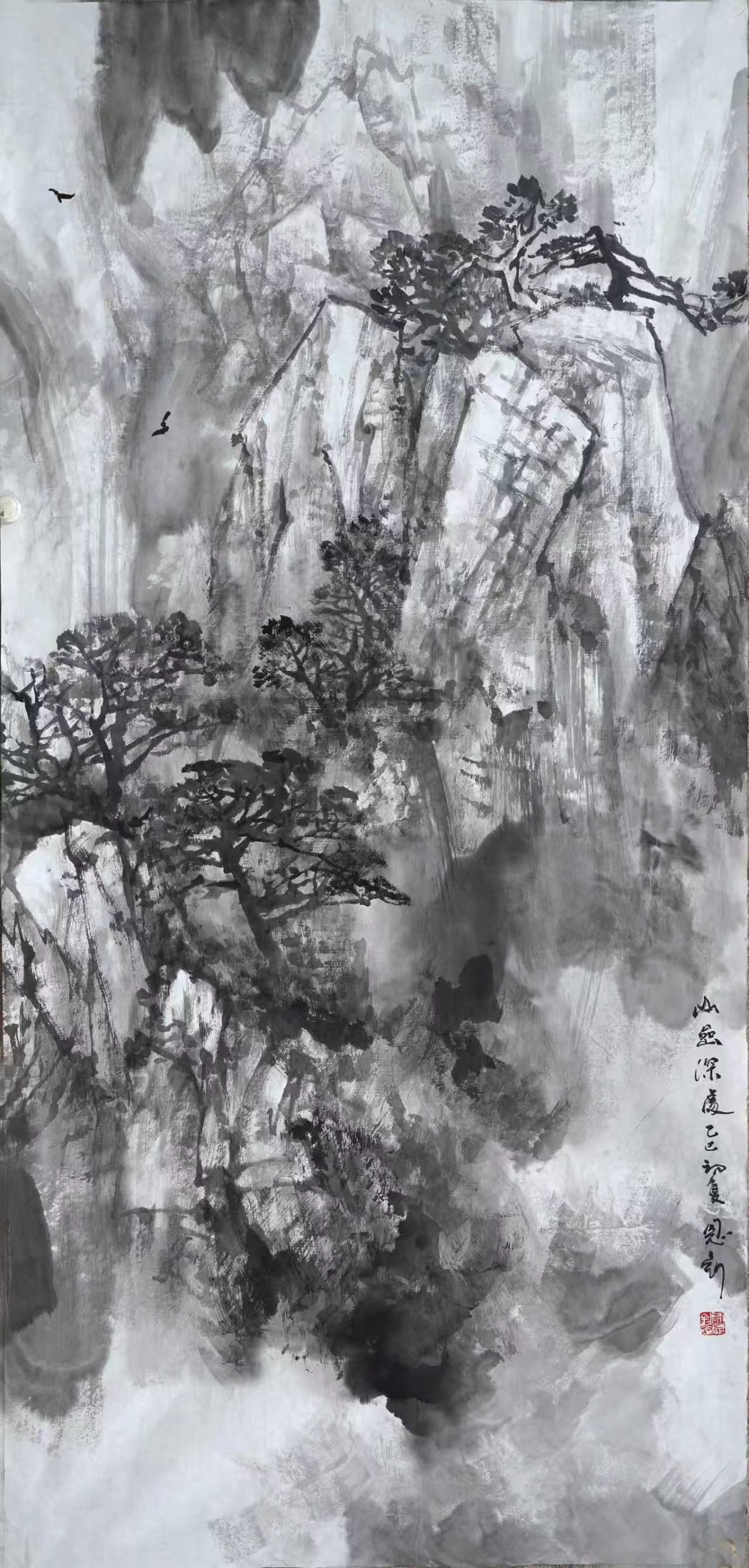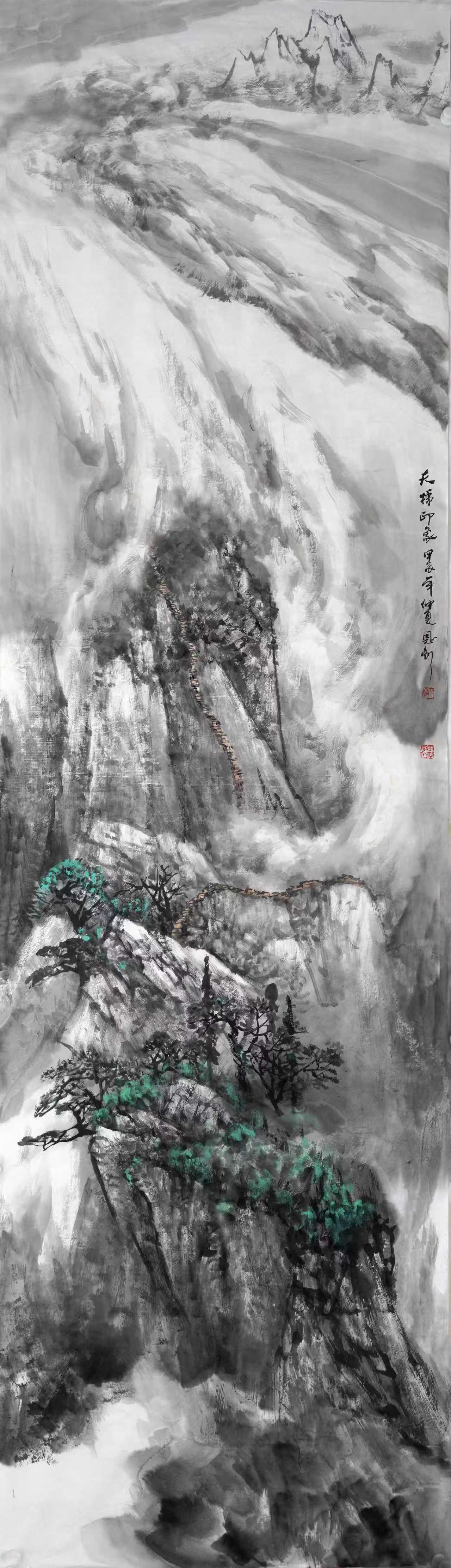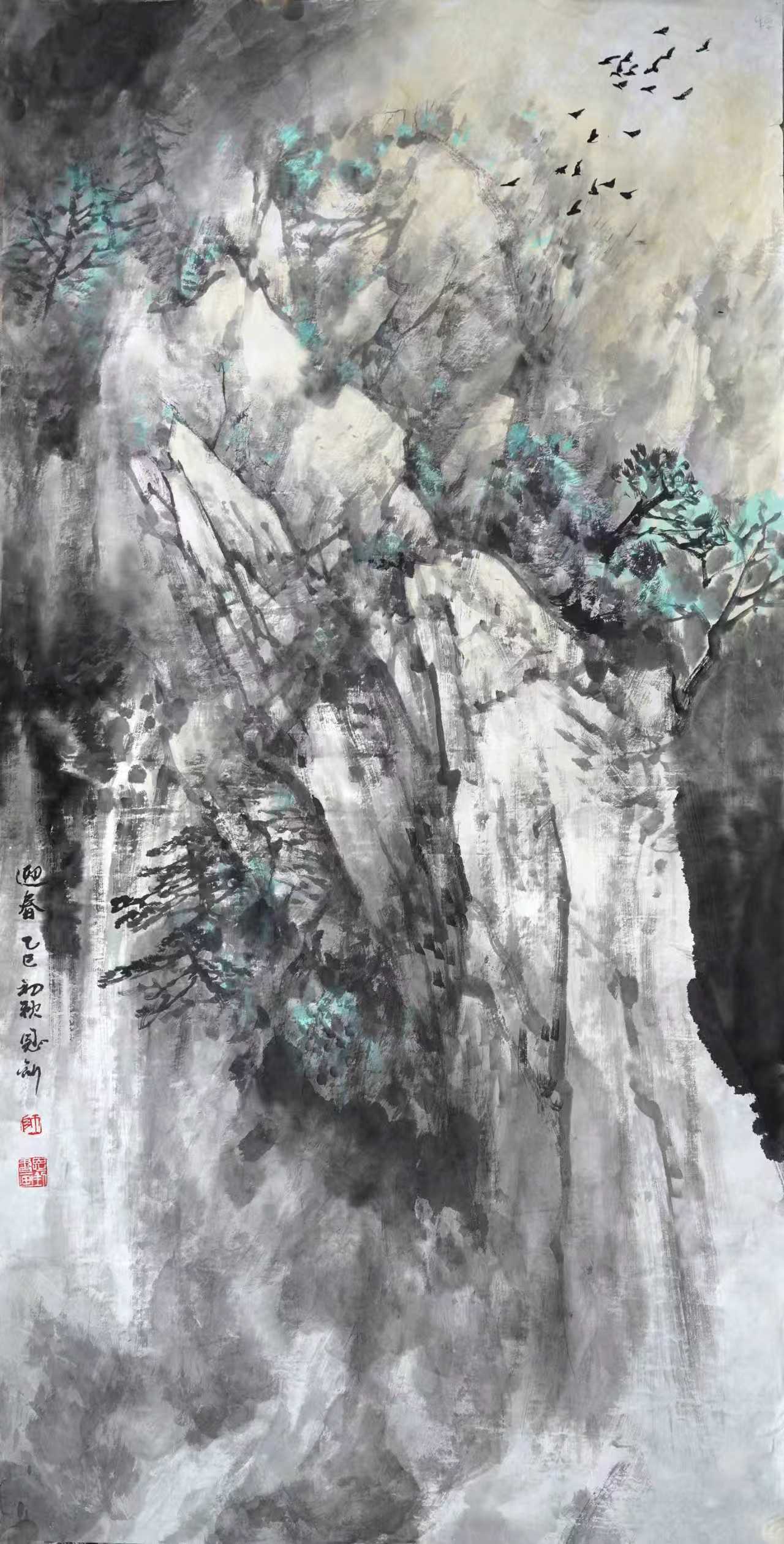 进入二十一世纪,在我的艺术生涯中,生活环境和创作环境都有了变化,眼界和思路都发生了变化,开始接触并研习北派山水,心灵上似乎进入了北派山水的圣地。随着画幅的增大,开始考虑将北方大山大水的气势充分展现于画面,同时也在思考在我们这个时代,如何赋予北派山水以新的面貌。这个时期的画,主要有以下几个方面的特点
