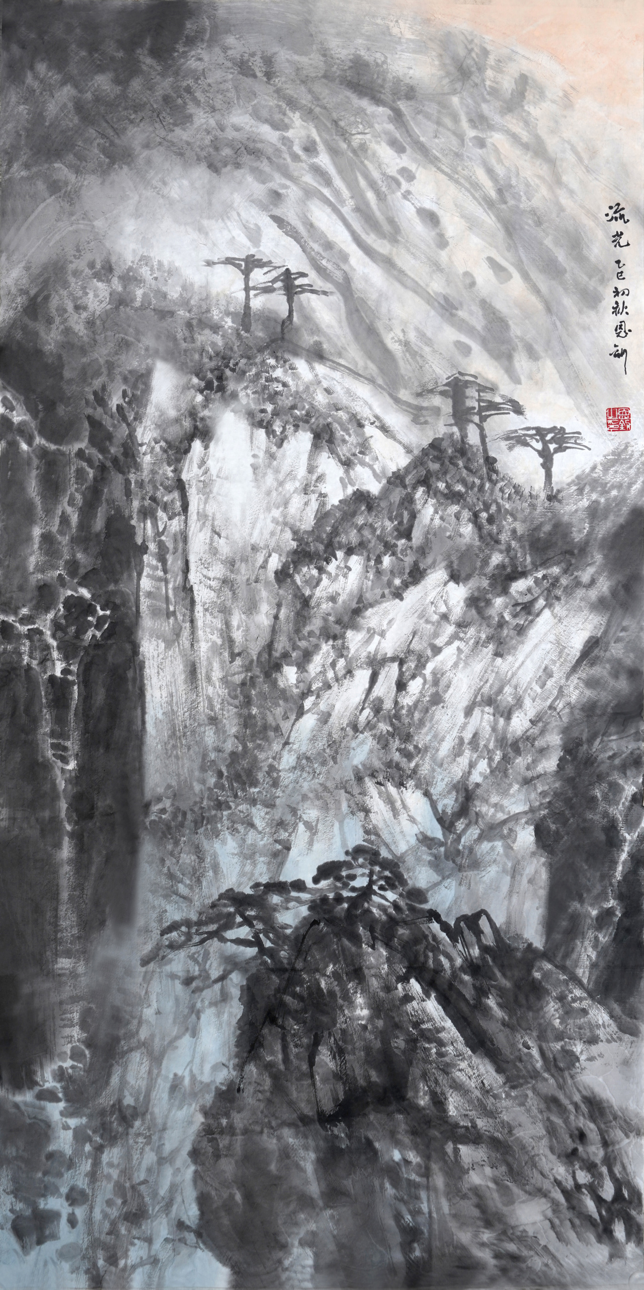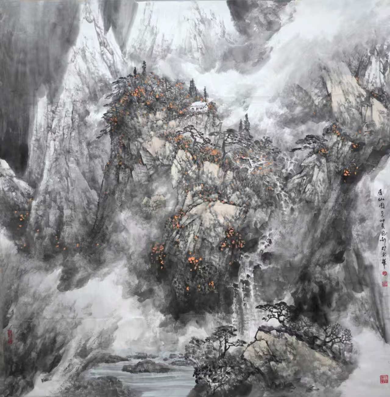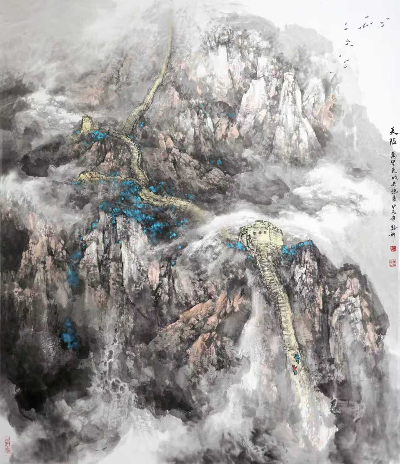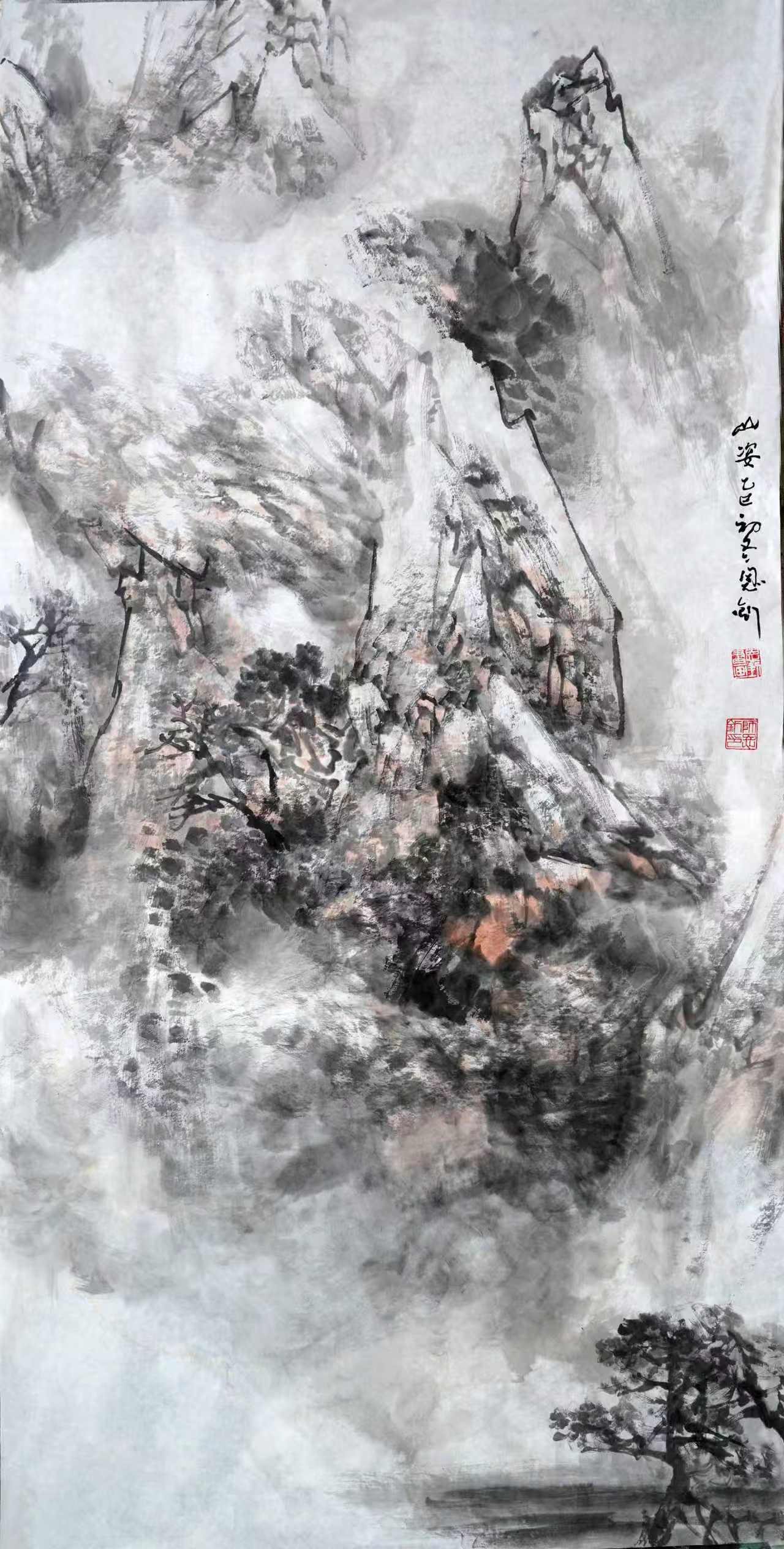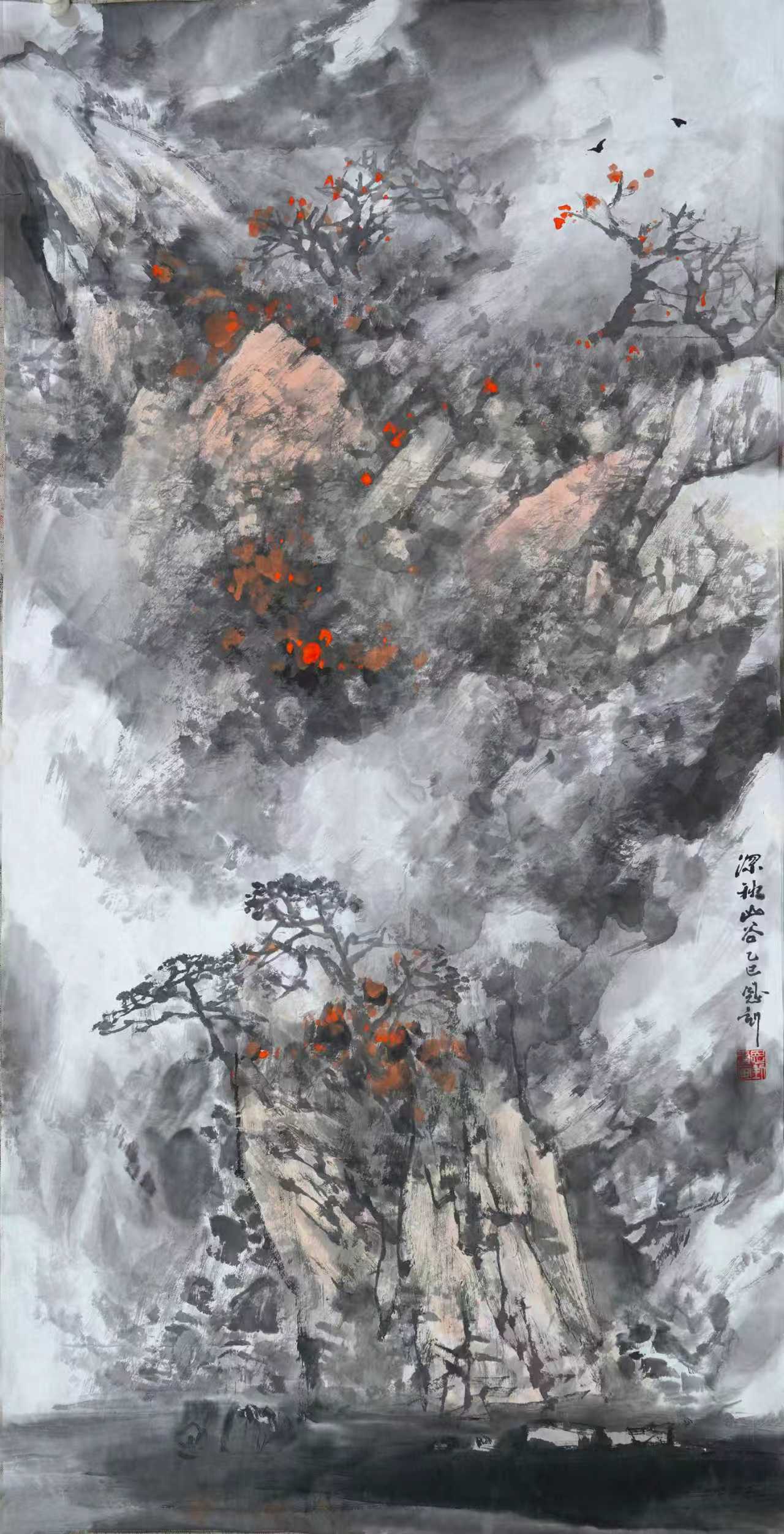 进入二十一世纪,在我的艺术生涯中,生活环境和创作环境都有了变化,眼界和思路都发生了变化,开始接触并研习北派山水,心灵上似乎进入了北派山水的圣地。随着画幅的增大,开始考虑将北方大山大水的气势充分展现于画面,同时也在思考在我们这个时代,如何赋予北派山水以新的面貌。这个时期的画,主要有以下几个方面的特点