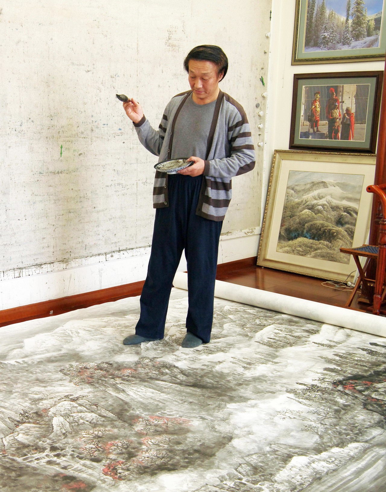 图:师恩钊先生在创作中